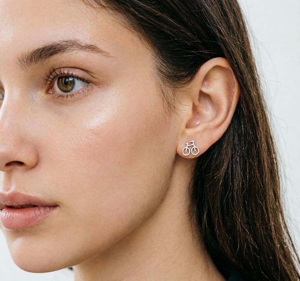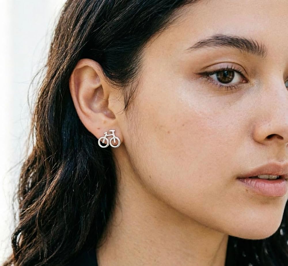 أقراط فضية على شكل دراجة. إذا كنت تريد إضفاء الأناقة على ملابسك فلا تبحث أكثر من هذا الزوج الجميل من الأقراط المثقوبة.