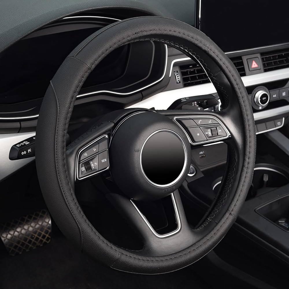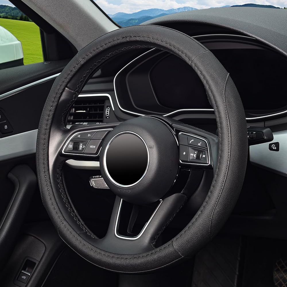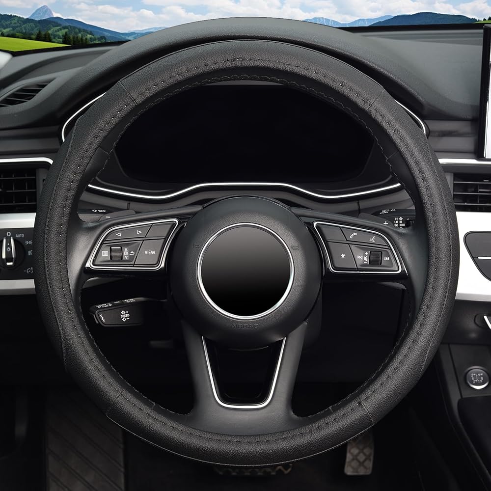 غطاء عجلة القيادة من كافيك، جلد أسود من الألياف الدقيقة، عالمي 15 بوصة، مجموعة من 2