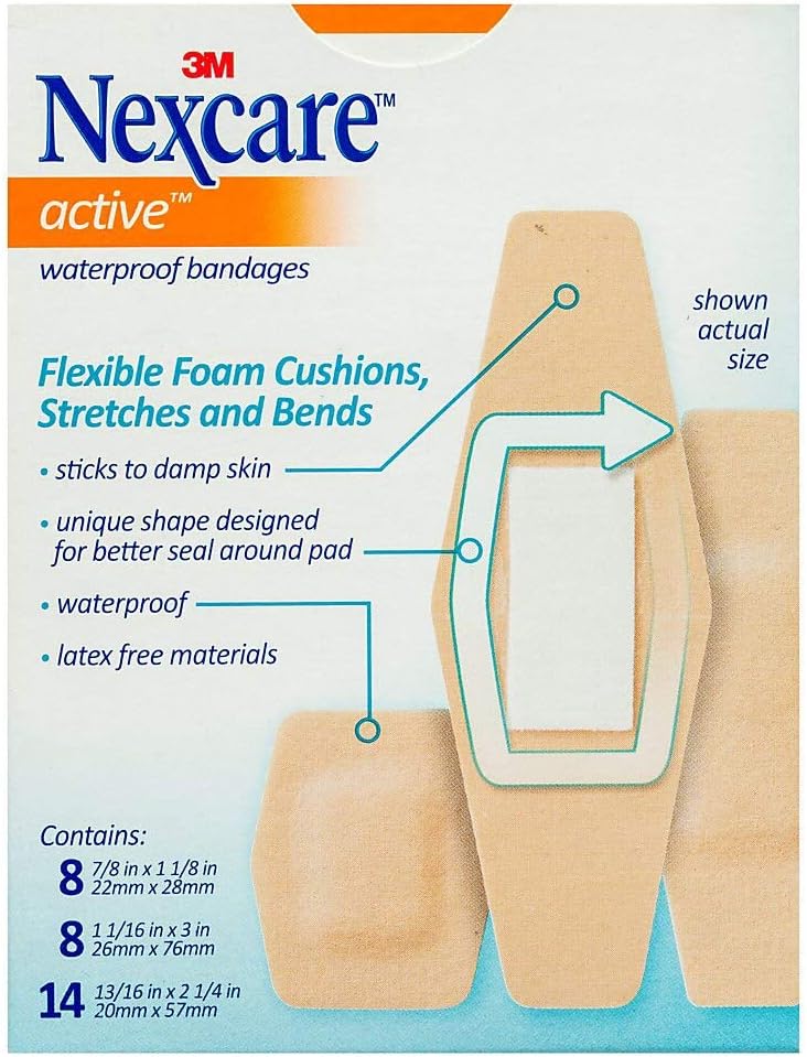 Waterproof - stays on in water and keeps water outFlexible foam cushions, stretches and sticks even to damp skinLatex free