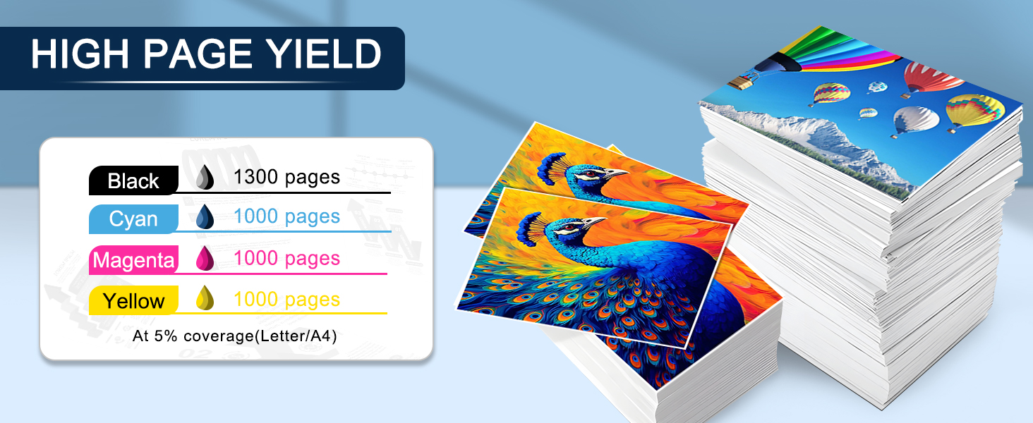 إنتاجية عالية للصفحة: 1,300 صفحة باللون الأسود؛ 1000 صفحة لكل لون بتغطية 5%.