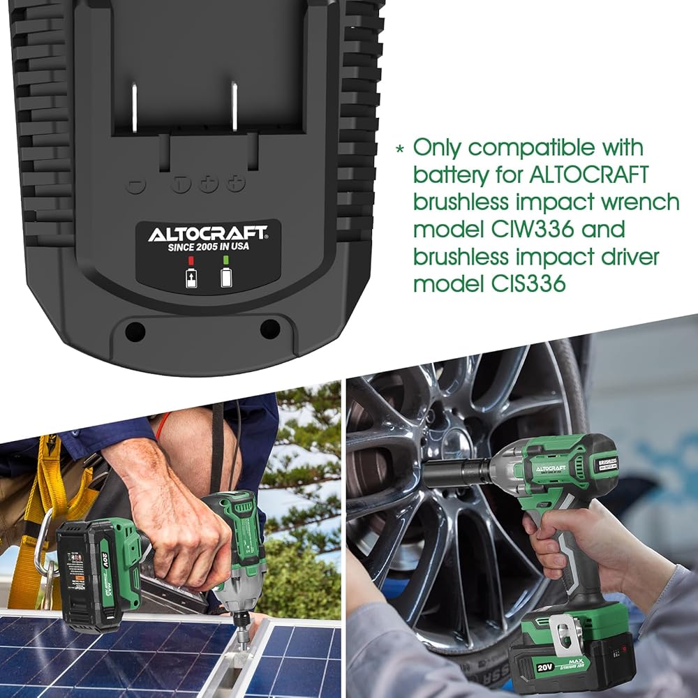 شاحن سريع من ألتوكرافت، متوافق فقط مع مفتاح الربط بدون فرشاة من ألتوكرافت CIW336 ومحرك الصدمات بدون فرشاة CIS336