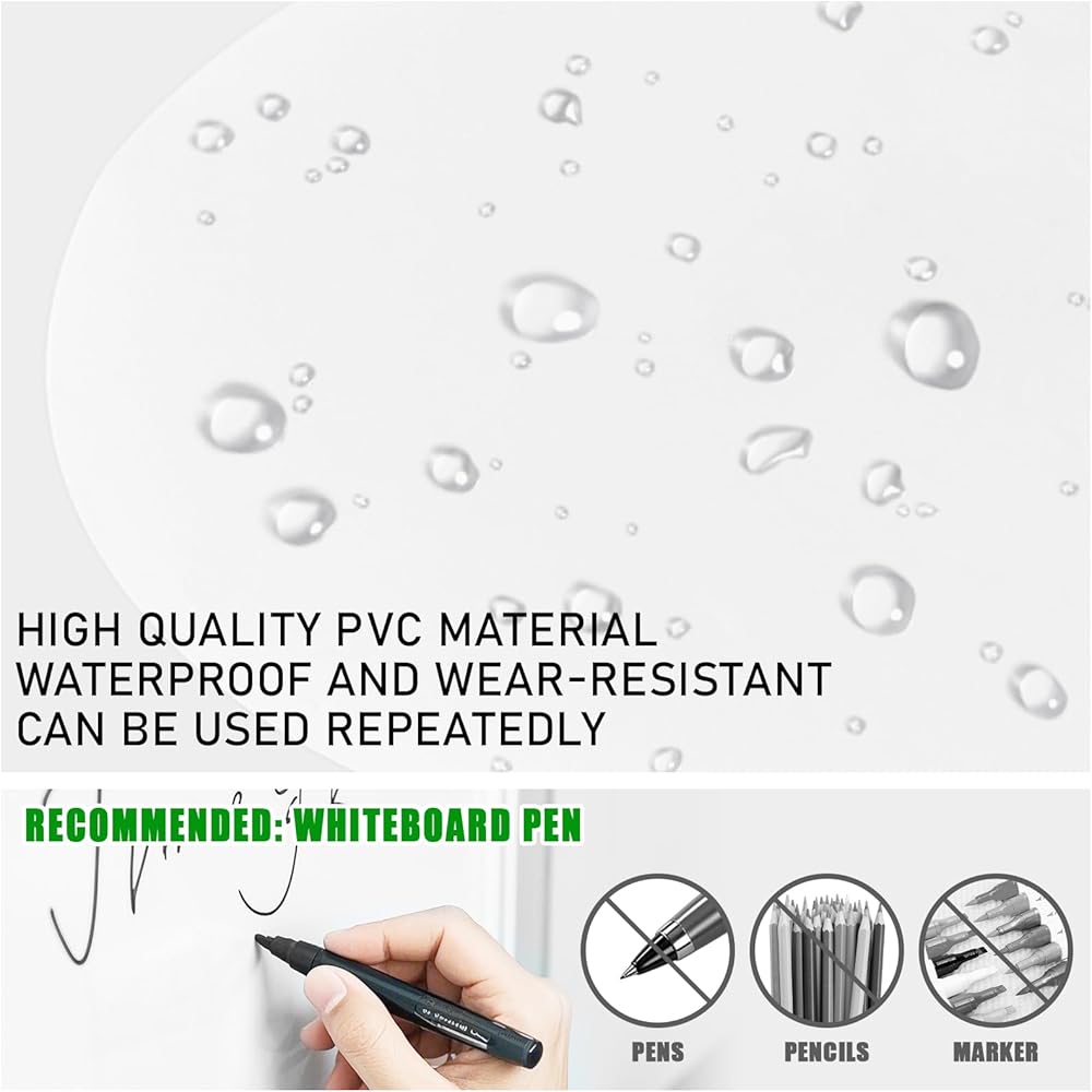 سهل الاستخدام: سهل التعامل، وأخف وزنًا من السبورة البيضاء. ويمكن لفه وأخذه بسهولة. كما أن الجودة المقاومة للماء تجعل من السهل مسحه عدة مرات كما تريد دون فقدان سطوع اللون أو ترك أي بقع.