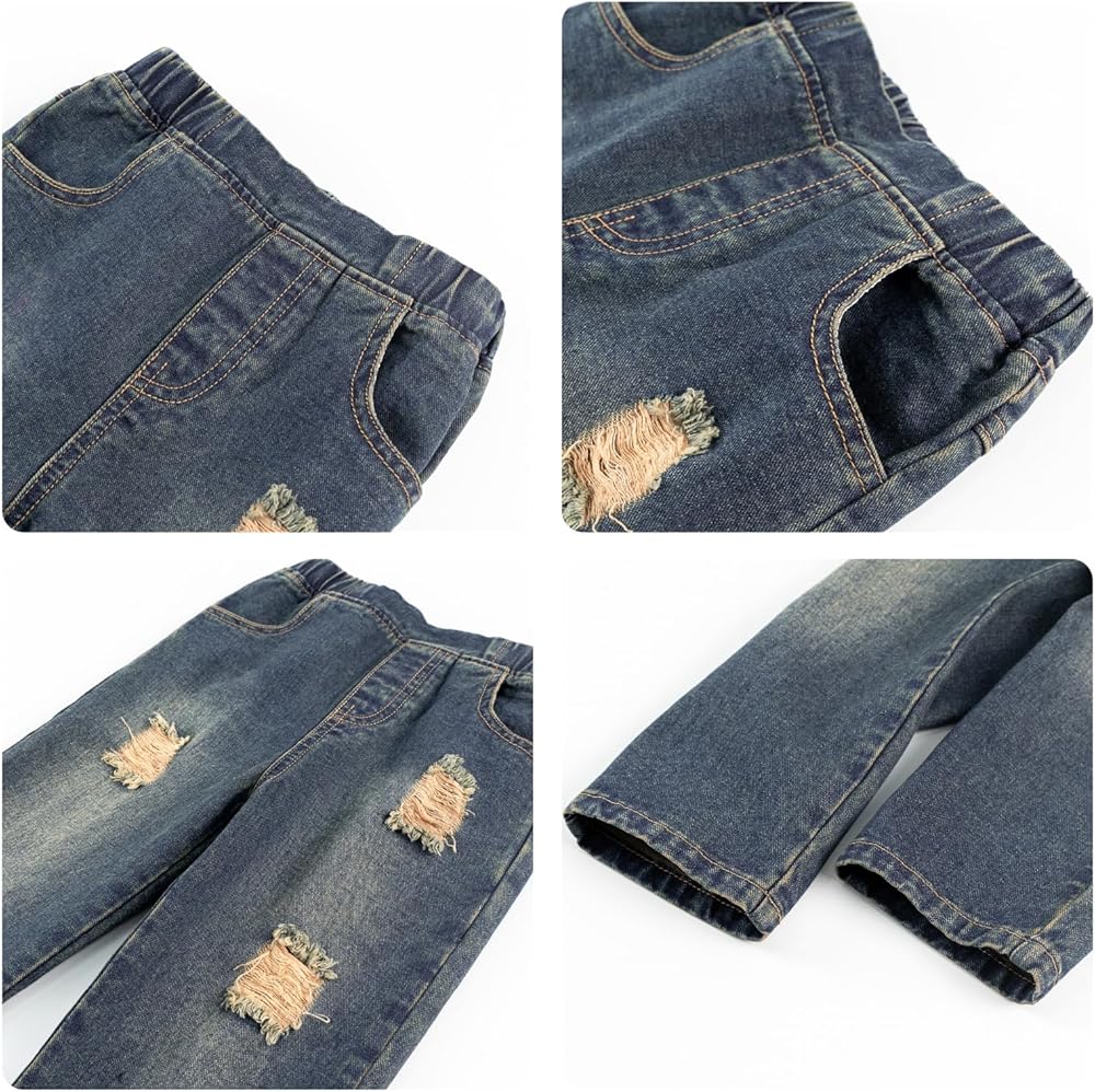❀【بنطلون دينم ممزق】يتميز الجينز بتصميم ممزق، وهو أكثر عتيقة وعصرية. حزام خصر مرن يمكّنه من ملاءمة شكل الطفل بشكل أفضل