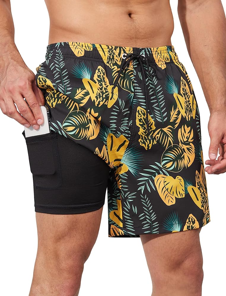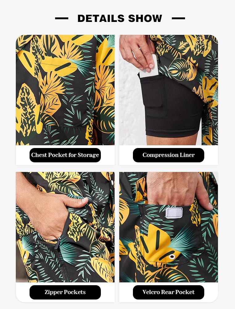 【جيب متعدد الوظائف】سراويل السباحة مع جيوب بسحاب على الجانبين، وجيوب فيلكرو خلفية وجيب مبطن يمكن أن تحمل بعض الأشياء الصغيرة بسهولة، بدلة السباحة الرجالية مع بطانة ضغط يمكن أن تقلل الاحتكاك في بشرتك، مع رباط خصر مرن.