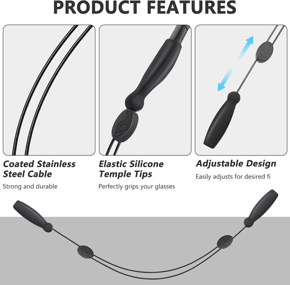 حزام كابل النظارات هذا مصنوع من الفولاذ المقاوم للصدأ وقابل للتعديل بالكامل من 9 إلى 14 بوصة وسيحافظ على نظارتك الشمسية في مكانها في أي مغامرة.
