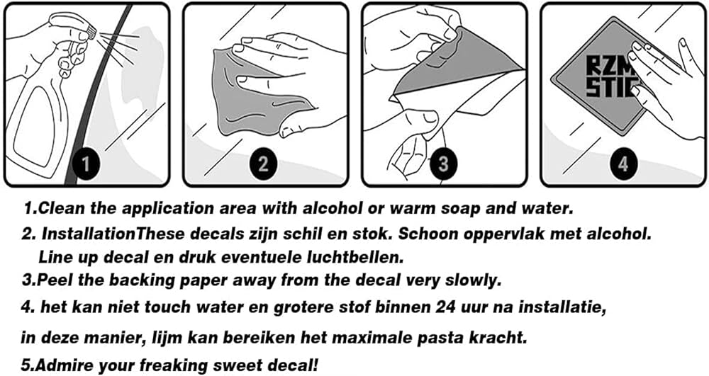 Easy Installation : Clean surface well with alcohol , peel sticker off backing paper and apply to surface with firm pressure and peel off clear transfer paper.