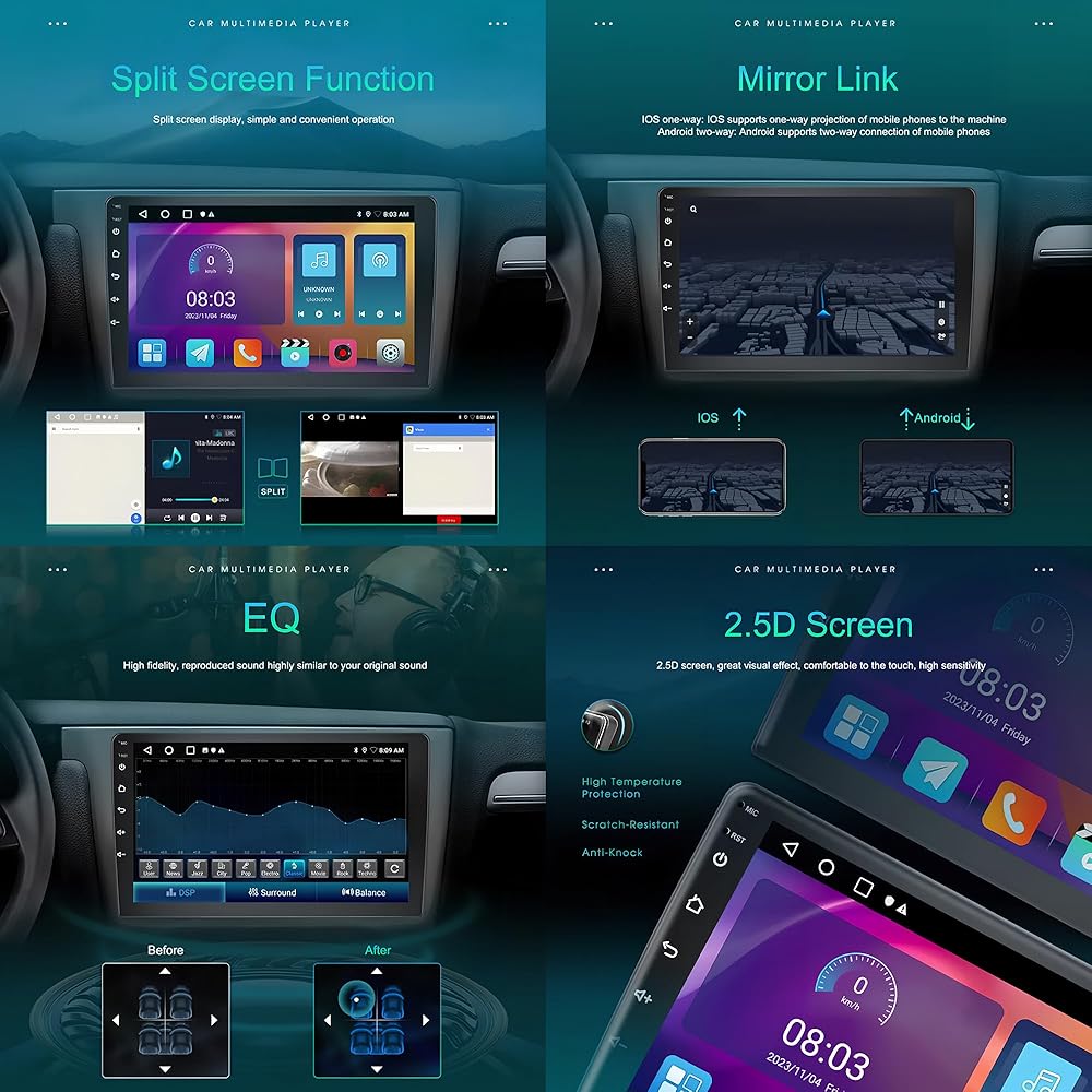 [أداء عالٍ] مع وحدة المعالجة المركزية القوية رباعية النواة، وذاكرة الوصول العشوائي 2 جيجابايت، وذاكرة الوصول العشوائي 32 جيجابايت، إلى جانب شاشة لمس IPS نابضة بالحياة مقاس 9 بوصة ودعم مجموعة واسعة من تنسيقات الصوت والفيديو، توفر هذه الترقية أداءً عاليًا وتنوعًا لتعزيز كل جانب من جوانب رحلتك.