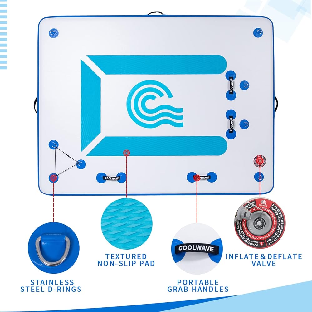 ✔Extra Bonus - We will send you an extra 20-inch-long rope as a bonus so that you can quickly and easily tethering to any dock, boat, or anchor with the stainless steel D-rings on our floating dock.