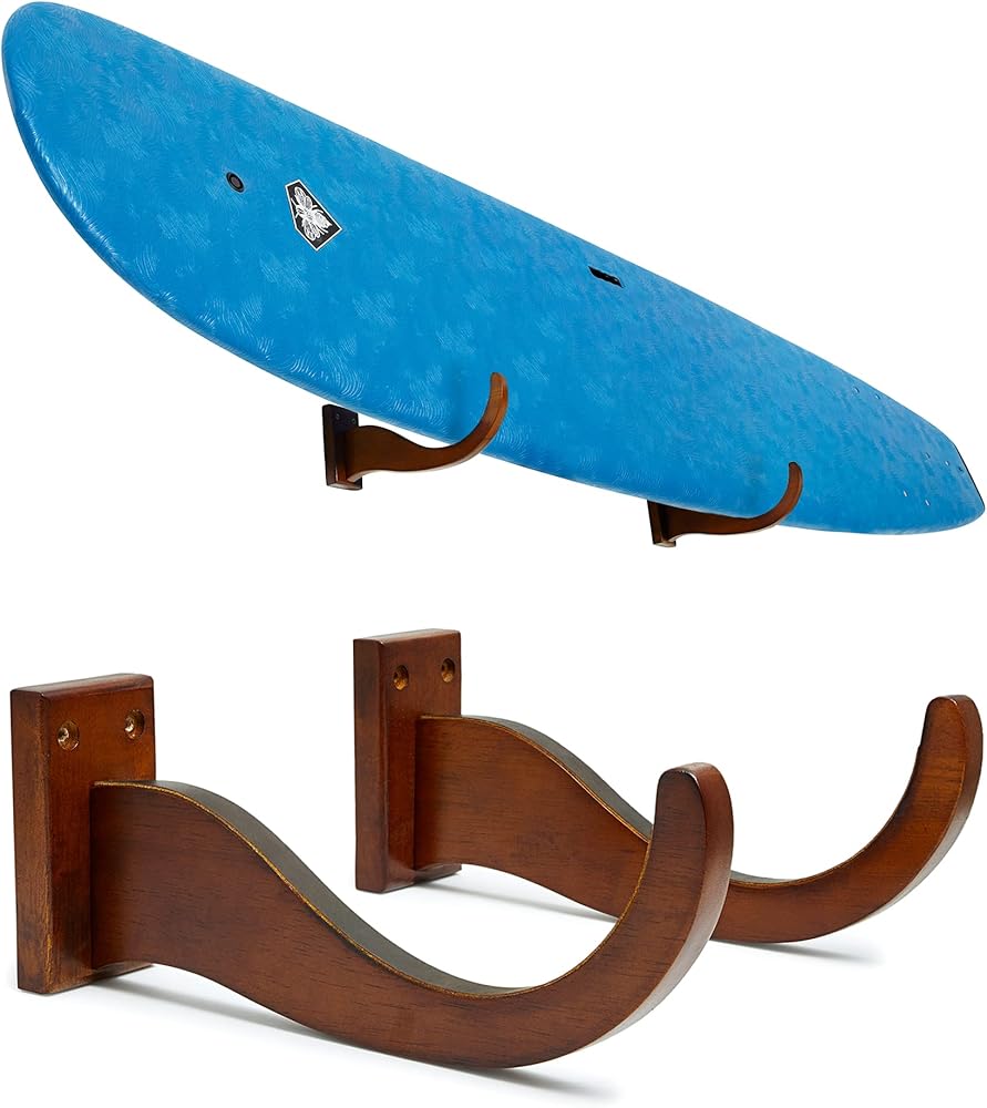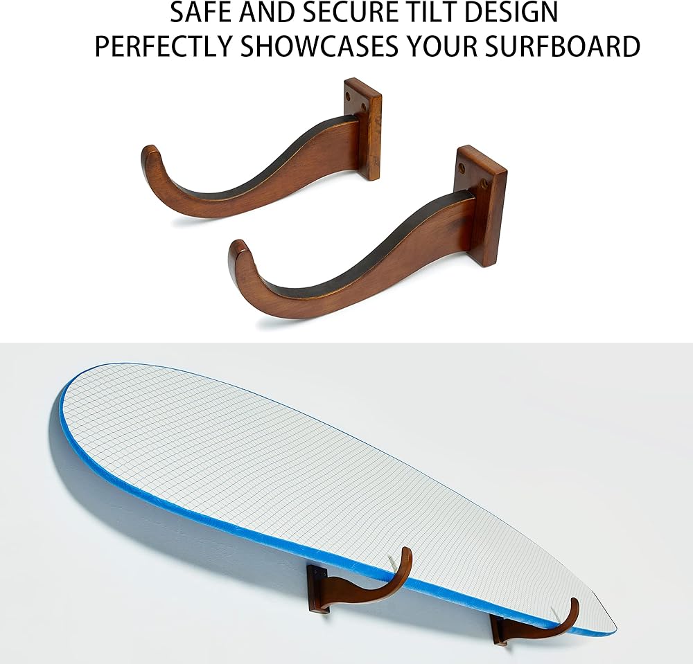 • WOOD SURFBOARD WALL RACK HANGER للألواح الطويلة واللوحات القصيرة تعمل على التخزين والعرض الداخلي والخارجي.
