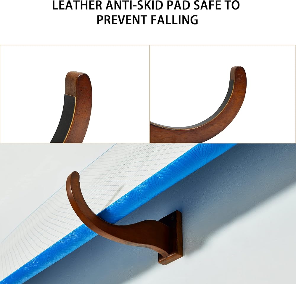 • خطافات حامل حائط لوح التزلج: · وسادات جلدية ناعمة من جلد البقر تحمي جعبة ركوب الأمواج وتمنع انزلاق اللوحة.