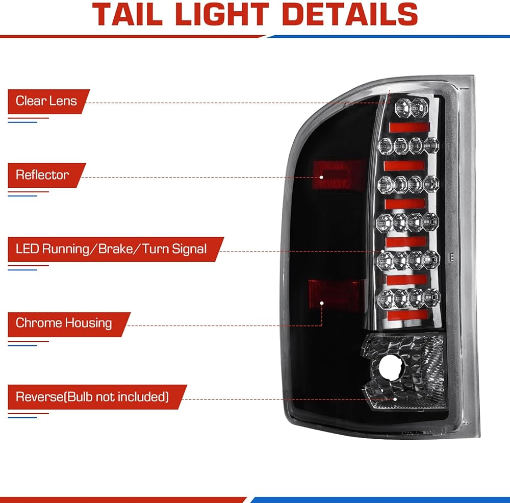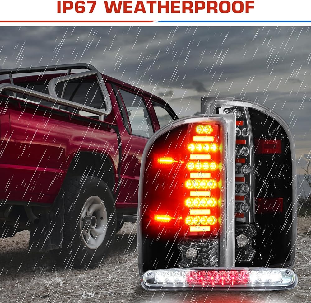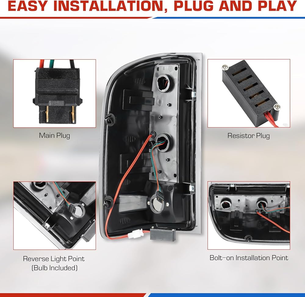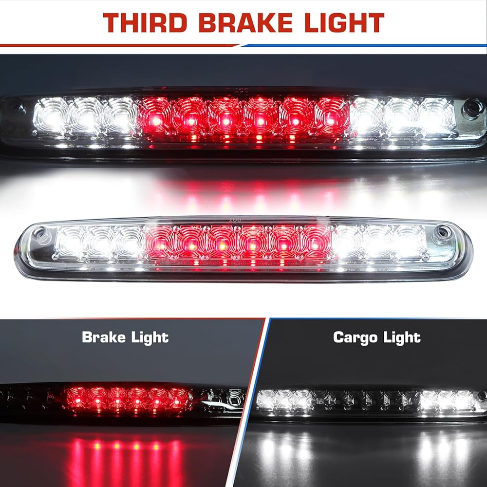 【Package Included】Chrome Clear Lens. 1* 3rd Brake Light (cargo light function); 2* Taillights (running light, brake light, turning signal light, reverse light function. 🔺Bulb Not Included. Need to Reuse Original Bulb of Reverse Light.).