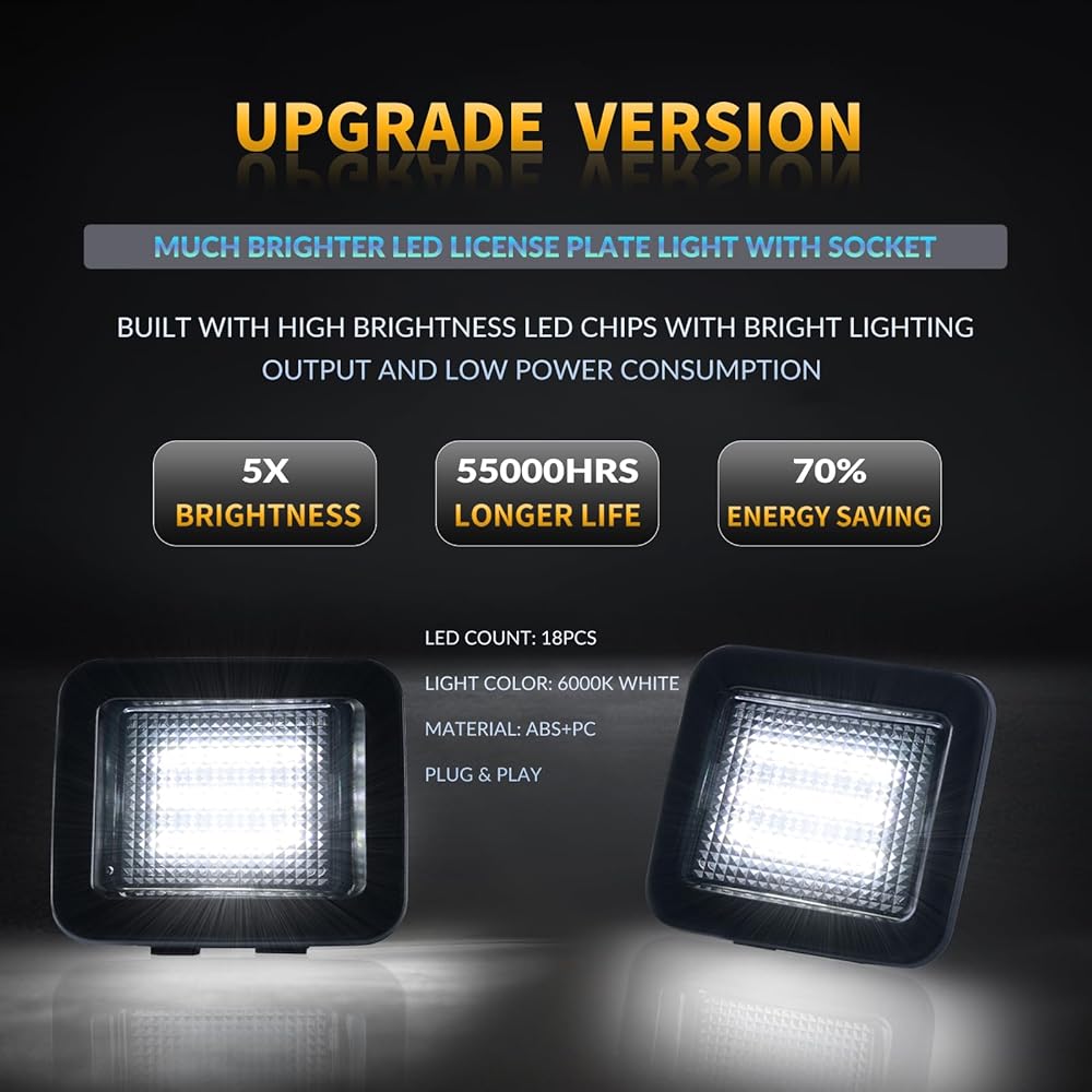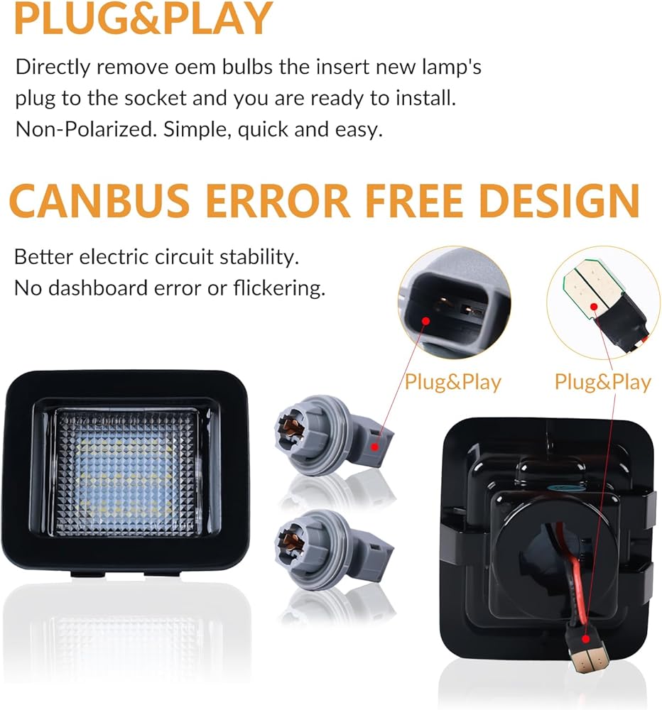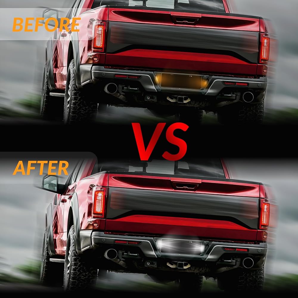 🚗LED License Plate Light Lamps with Socket for 2015-2023 F150 2017-2022 Raptor Rear Tag Lights, 6000K White 2PCS