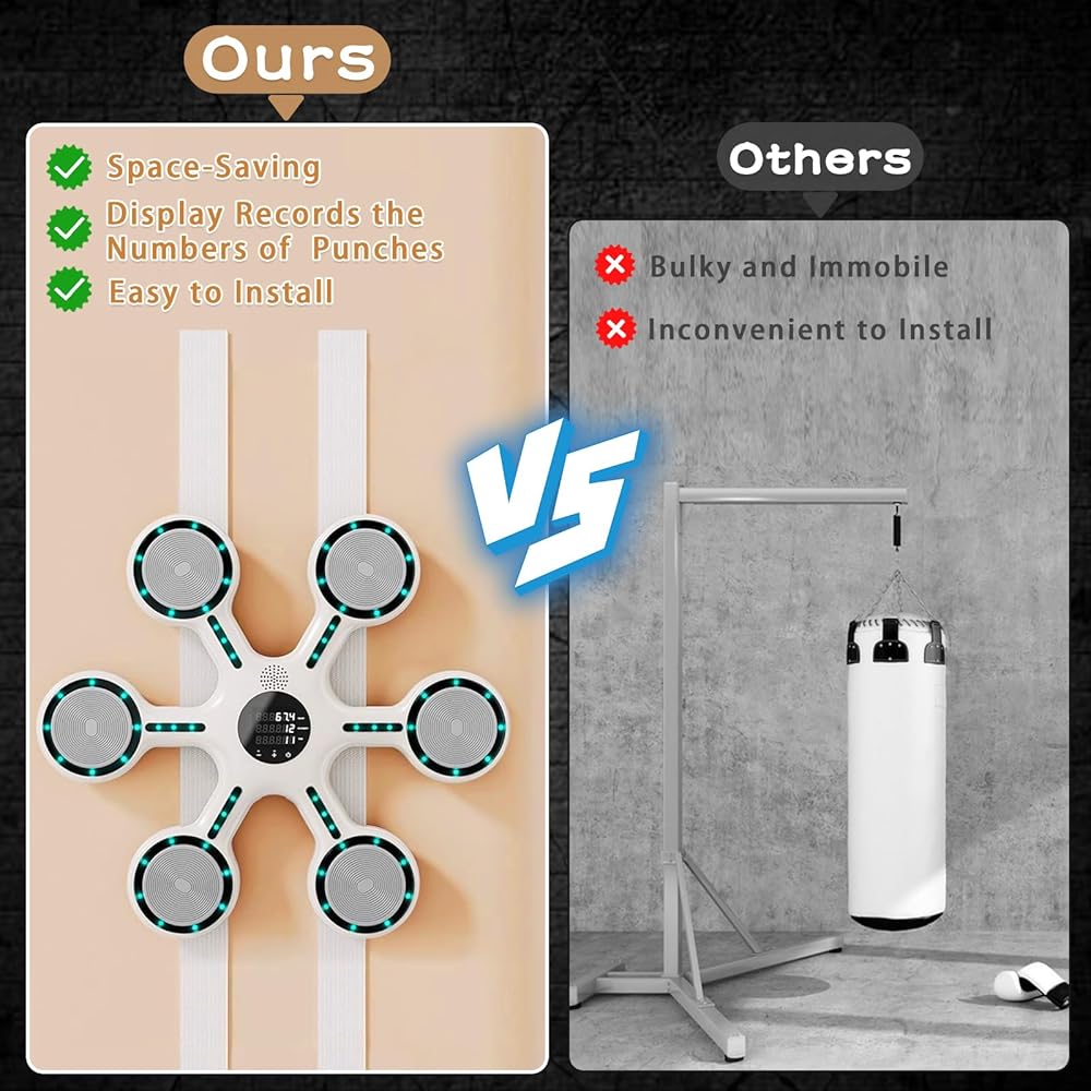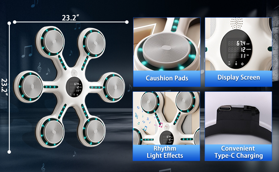 [شاشة بلوتوث وLED] ستعرض لك شاشة LED عدد الضربات لتسجيل كل تقدم ونمو. تدعم آلة تمرين موسيقى الملاكمة موسيقى البلوتوث حتى تتمكن من اختيار أغانيك المفضلة عند استخدام آلة الملاكمة الموسيقية هذه. ما عليك سوى اتباع إيقاع قبضة اليد وإطلاق الشغف، وتبقيك مكبرات الصوت المحيطية والأضواء الرائعة منغمسًا أثناء التدريب.