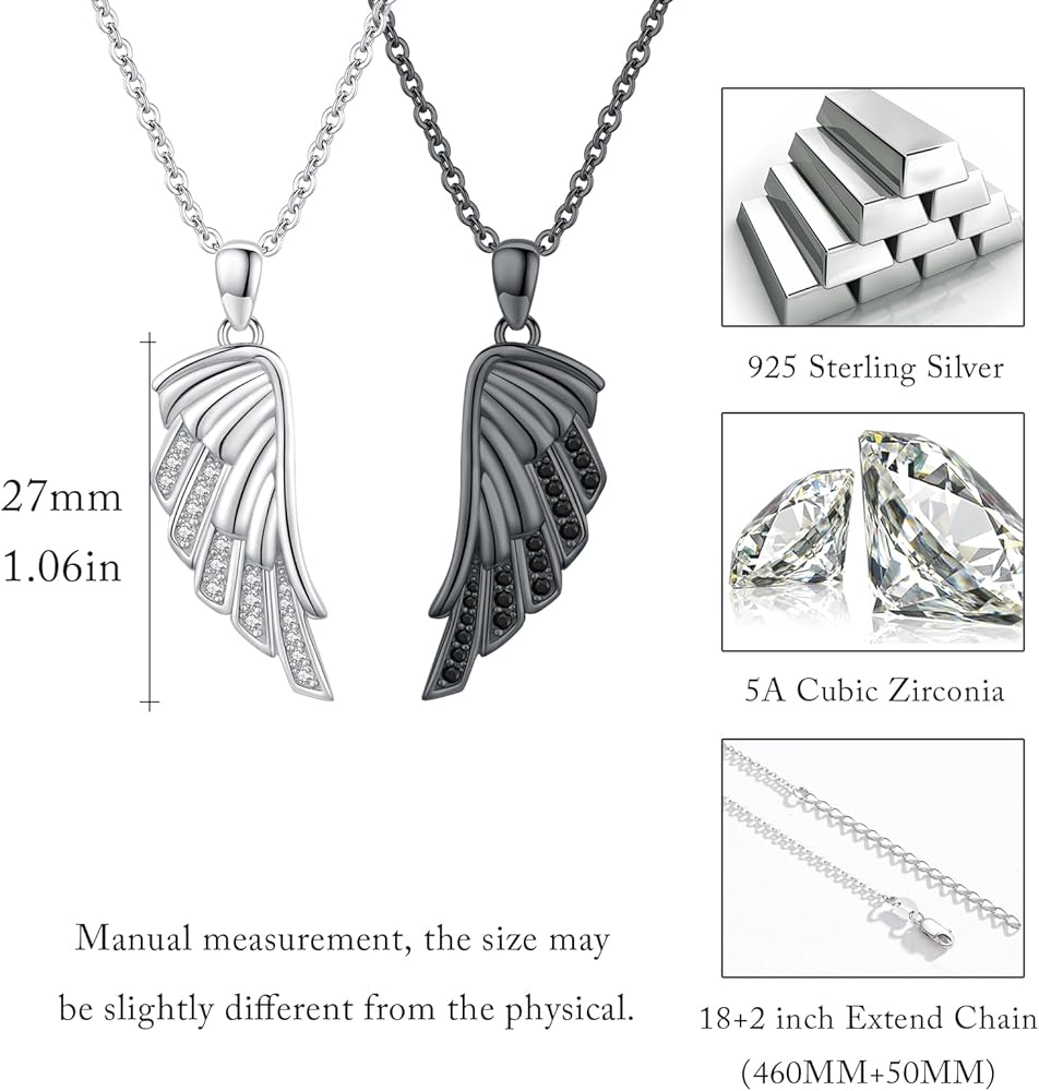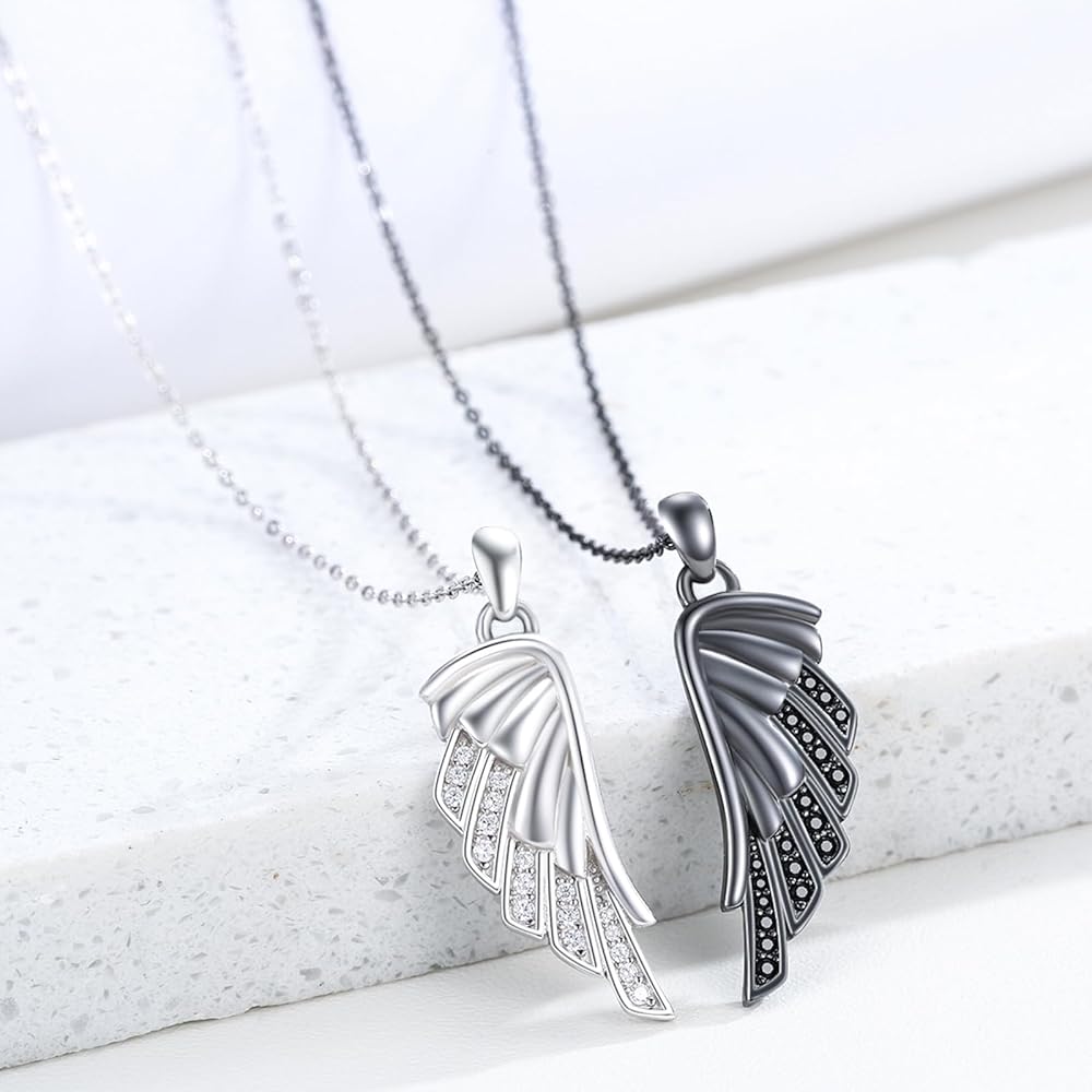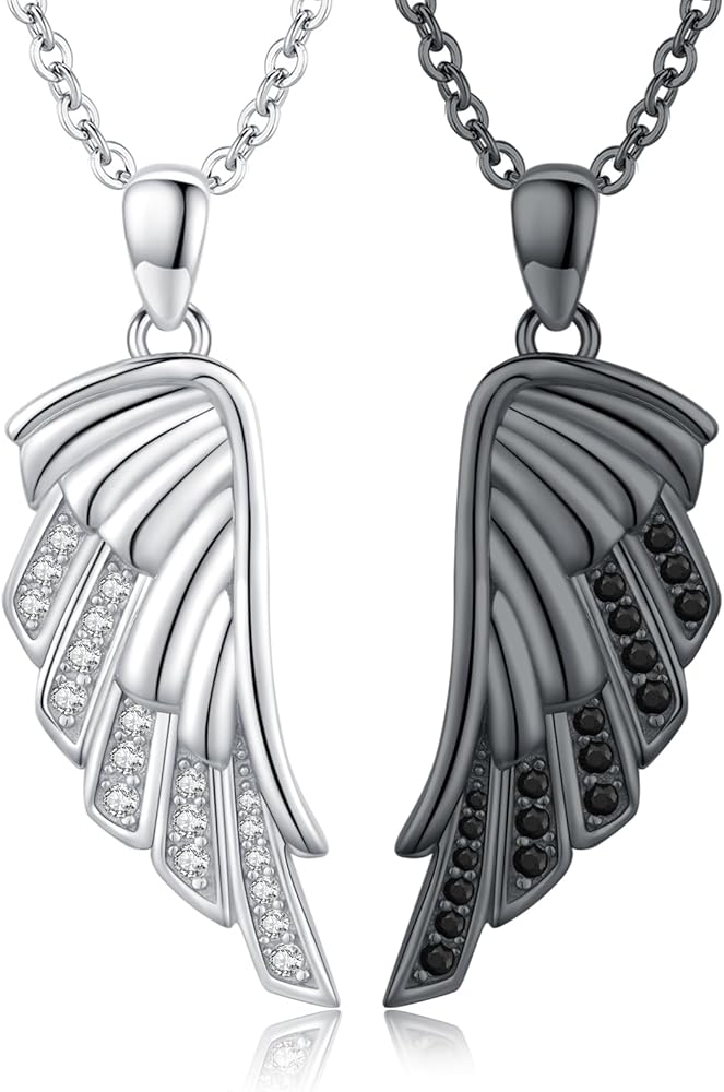 💖تصميم قلادة للأزواج: تصميم هذه القلادات ذات الأجنحة غني بالمعنى، مما يمثل الاتحاد المتناغم بين روحين. ترمز الأجنحة المصنوعة من الذهب الأسود والأبيض إلى التوازن بين الرجال والنساء، كما تشير أيضًا إلى الرحلة والنمو الذي يعيشه كل فرد معًا في العلاقة.