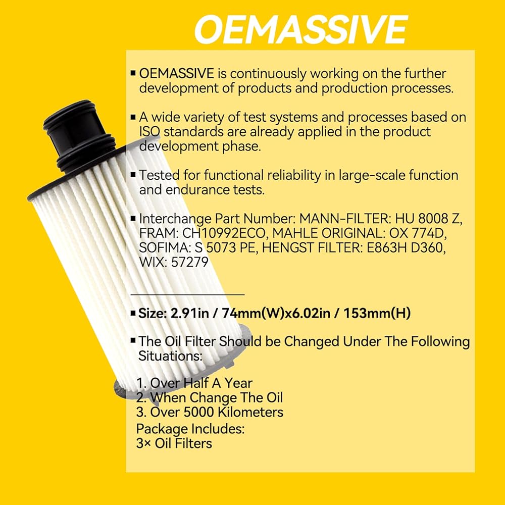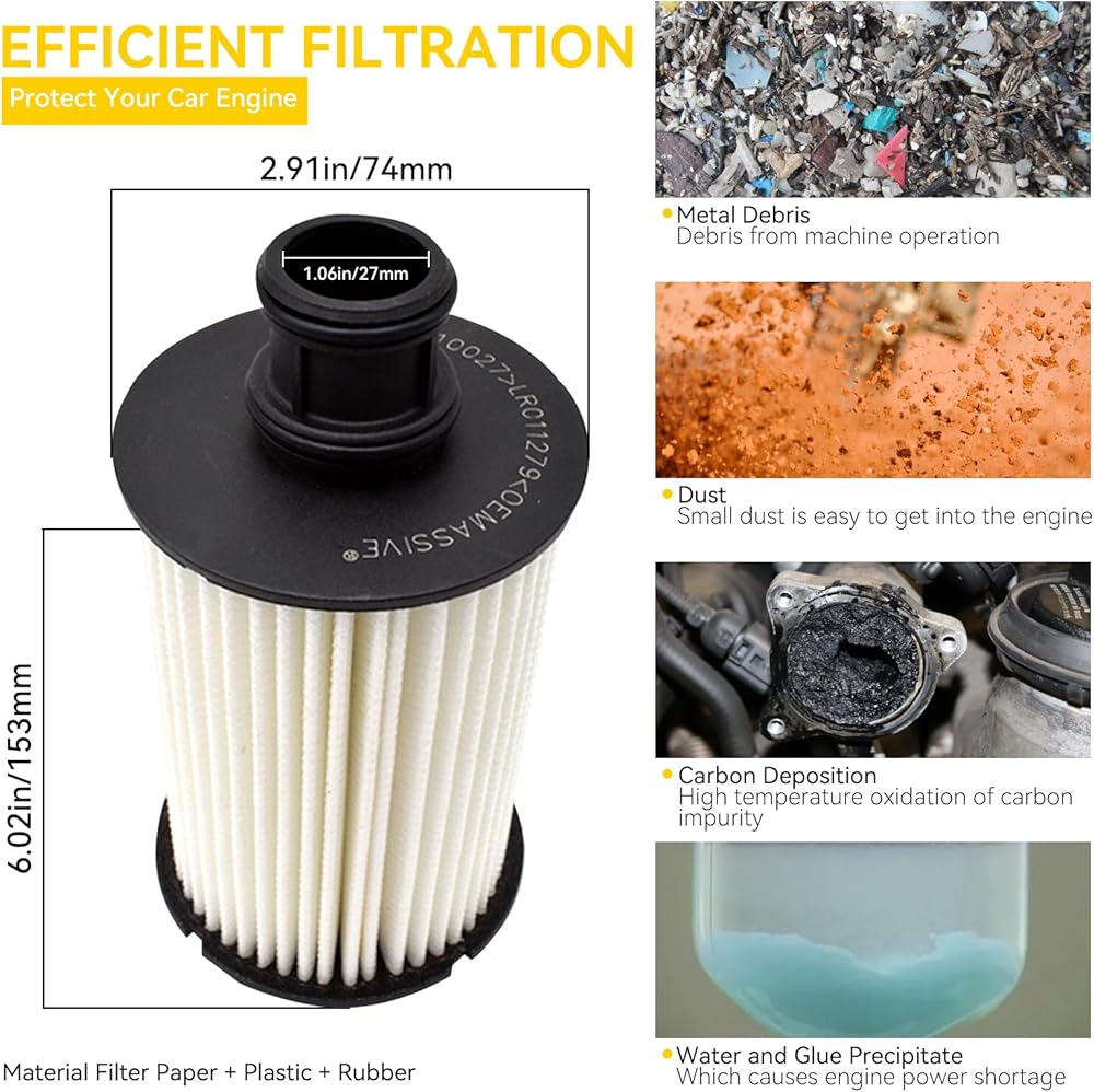 • المواد: ورق فلتر + بلاستيك + مطاط الحجم: 2.91 بوصة / 74 مم (عرض) × 6.02 بوصة / 153 مم (ارتفاع) تتضمن العبوة: 3 × مرشحات زيت