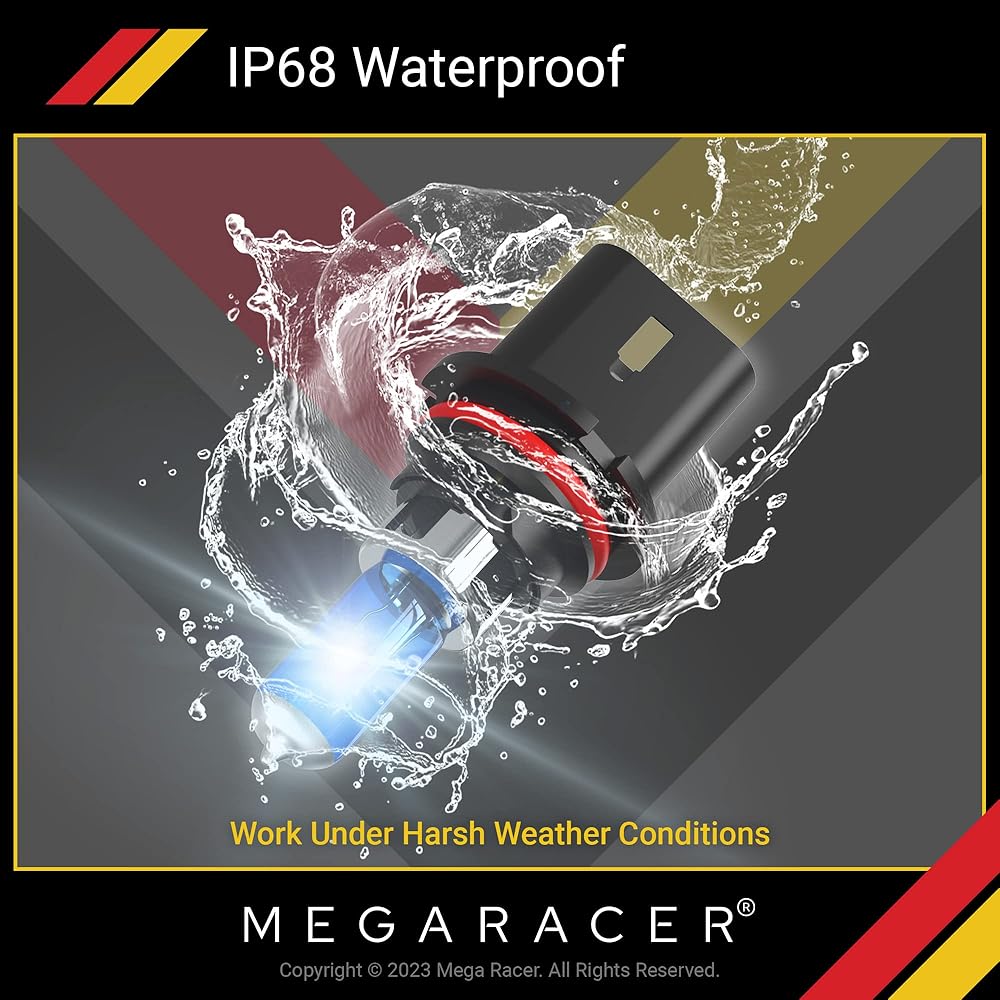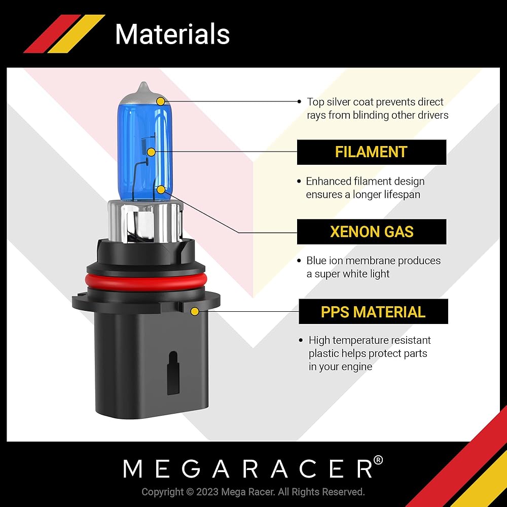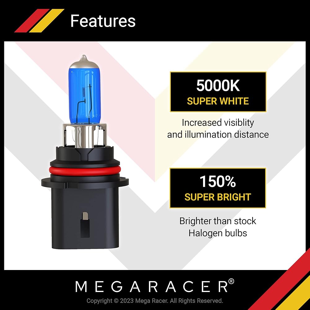 مصابيح هالوجين أمامية Mega Racer 9007/HB5 - 100W/80W 5000K ضوء نهاري أبيض لاستبدال شعاع Hi/Lo IP68 المقاوم للماء، قاعدة PX29t، حزمة من 2
