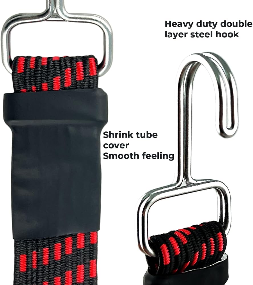 الوظيفة - تم تصميم الخطافات المعدنية شديدة التحمل الموجودة على أحزمة المطاط المطاطي لتثبيت العناصر بشكل آمن وتأمينها للسيارات والقوارب والمنزل والمقطورة والمزيد.