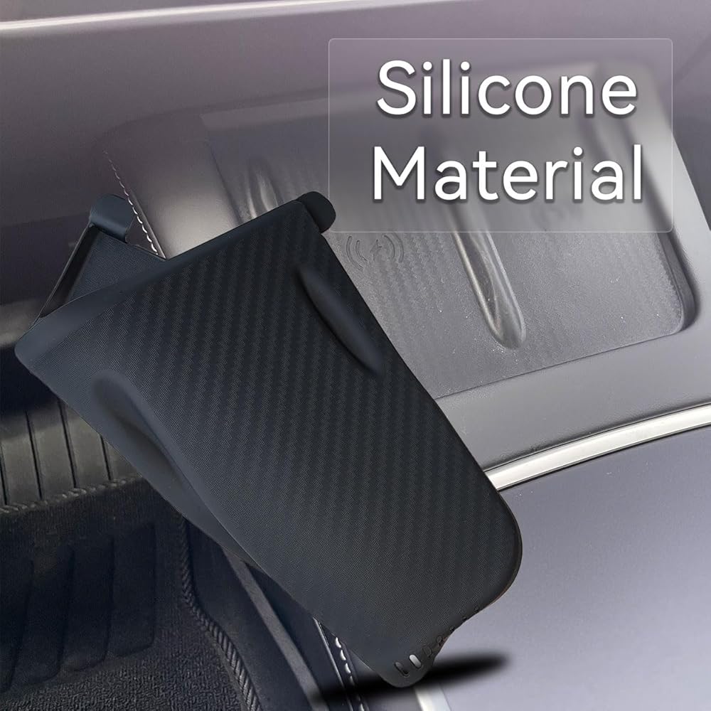 حصيرة شحن لاسلكية لوحدة التحكم المركزية، وسادة سيليكون مقاومة للماء، لمسة نهائية من ألياف الكربون الصناعية المضادة للانزلاق، متوافقة مع طراز Tesla 3 21-23 موديل Y 21-24، ملحقات داخلية 2 حافظة مفاتيح للبطاقة