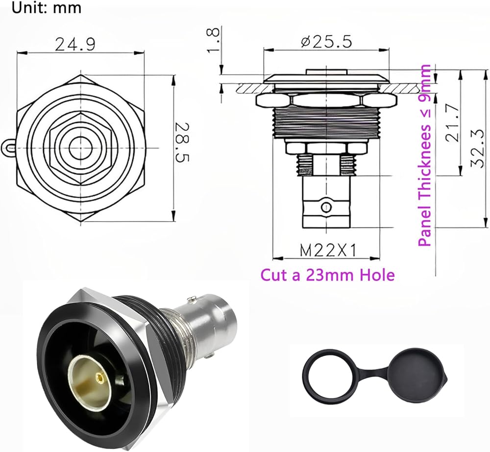 موصل تركيب لوحة BNC مطلي بالذهب 75 أوم - محول محوري من أنثى إلى أنثى متوافق مع SDI مع غطاء مقاوم للماء، تثبيت ملولب لتعزيز أنظمة الاتصالات والمراقبة