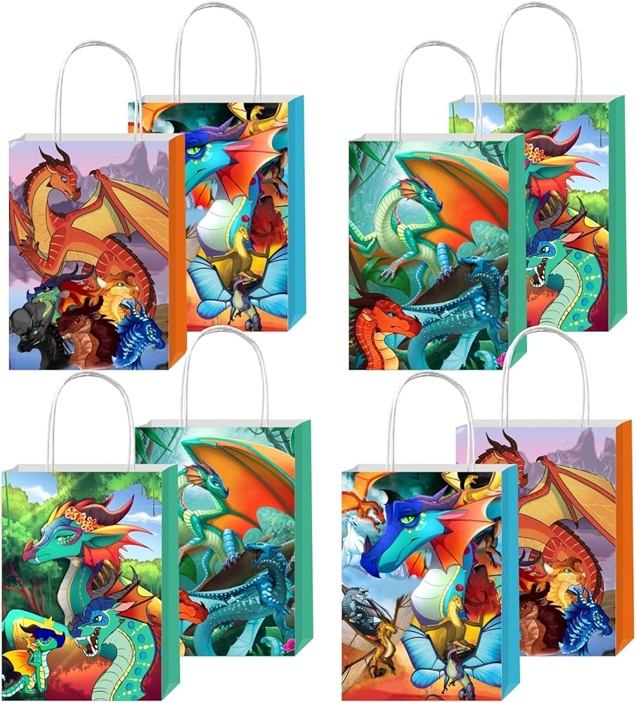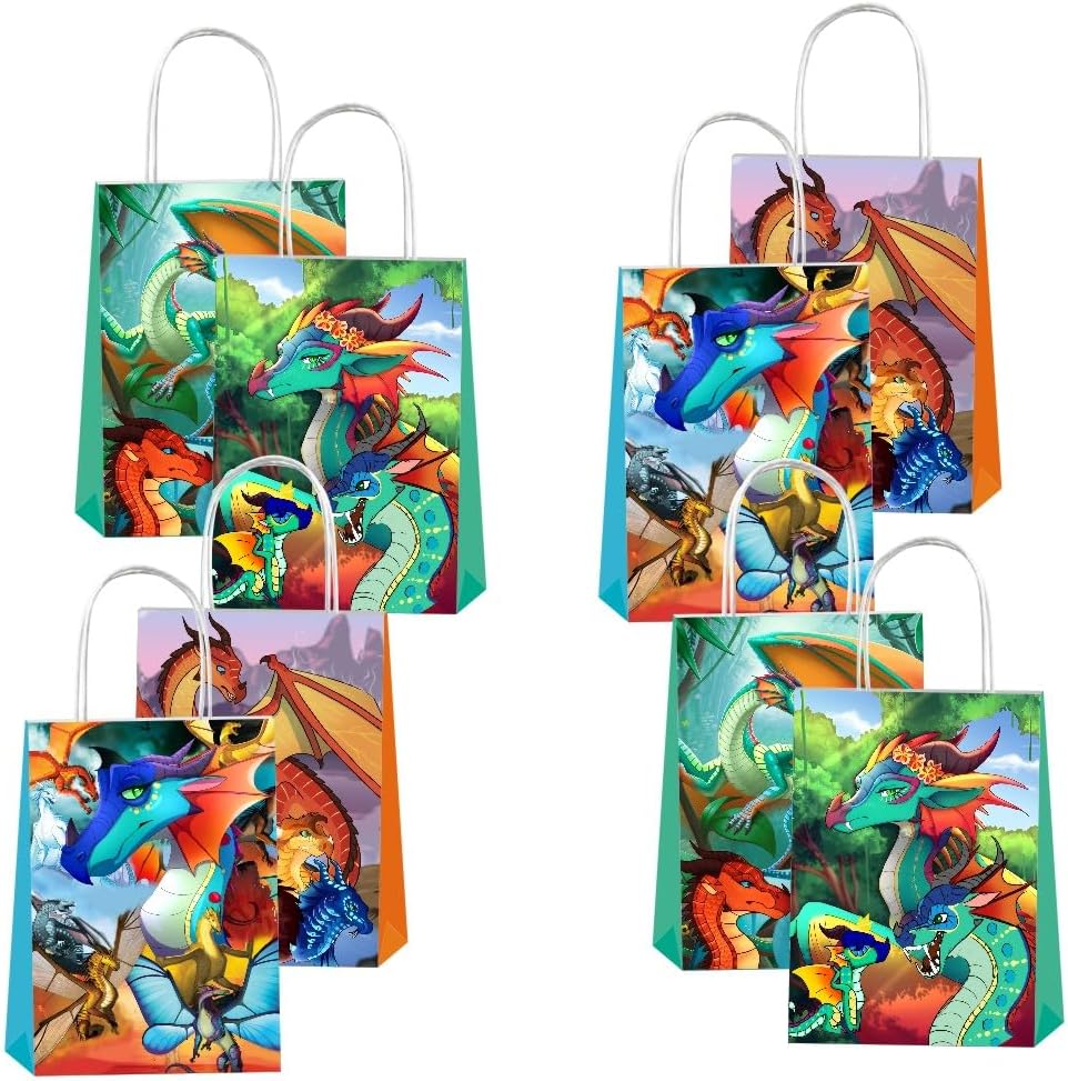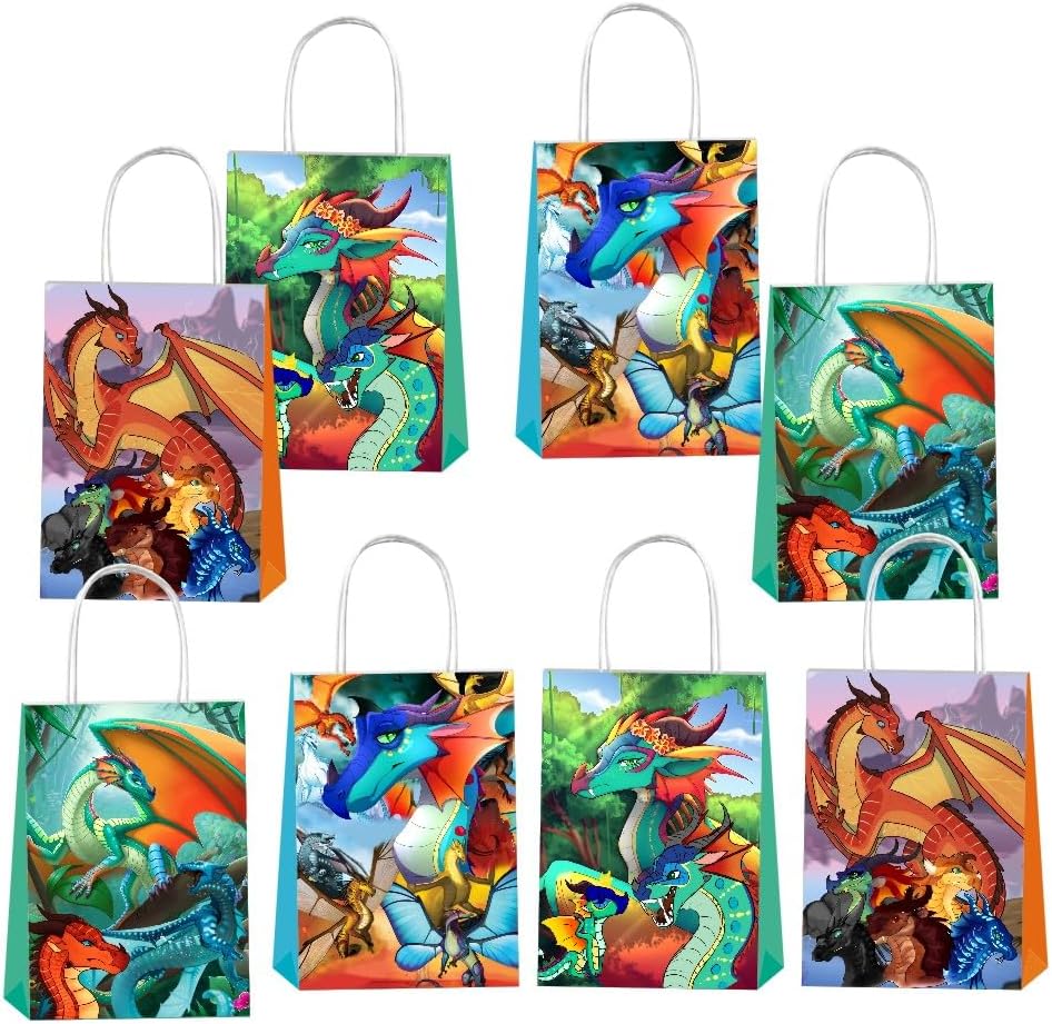 12pcs Wings of Fire Party Favor Gift Bags with Handles for Kids Birthday Party Supplies Decorations