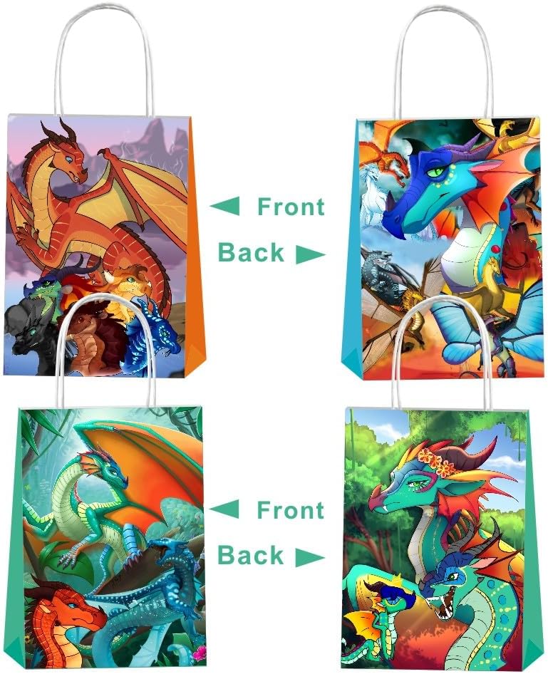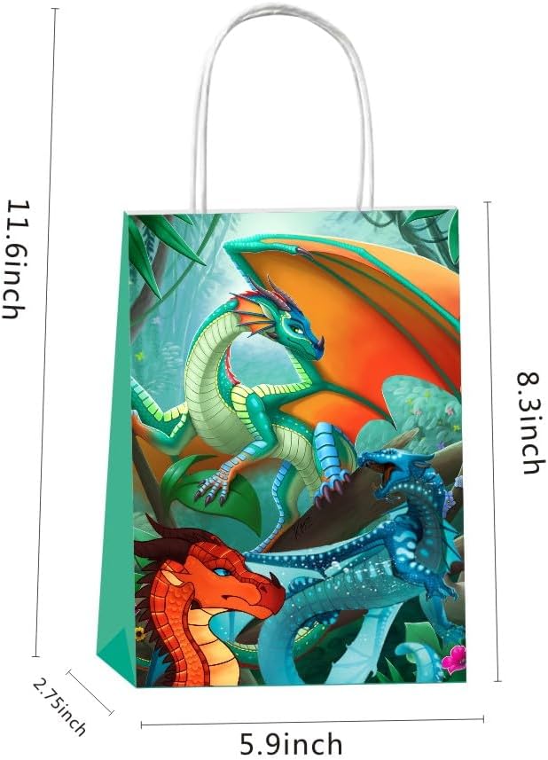 【Cute Design】:The Wings of Fire theme gift bags is 8.3"x5.9" x2.75". All gift bags are sturdy and supported many candies you put inside.