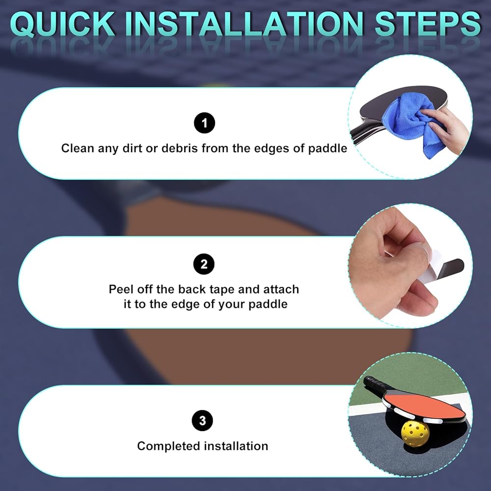【سهلة الاستخدام】فقط قم بتنظيف حافة المجداف قبل وضع شريط كرة المخلل، ثم قم بتقشير الجزء الخلفي من الشريط للصقه على موضع مجاديف كرة المخلل.