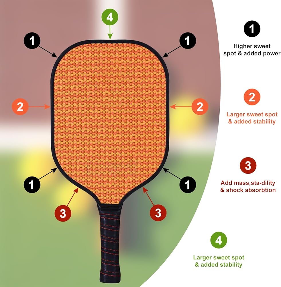 【تحسين التحكم】 توفر كرة المخلل ذات الشريط الرصاصي ثباتًا أكبر لمجدافك، مما يتيح تحكمًا أسهل في الكرة ويقلل من الضربات المفقودة، من خلال وضع الشريط الموزون على الجزء العلوي والجوانب من مجدافك، يمكنك زيادة قوتك وتدور من أجل تحكم أفضل.