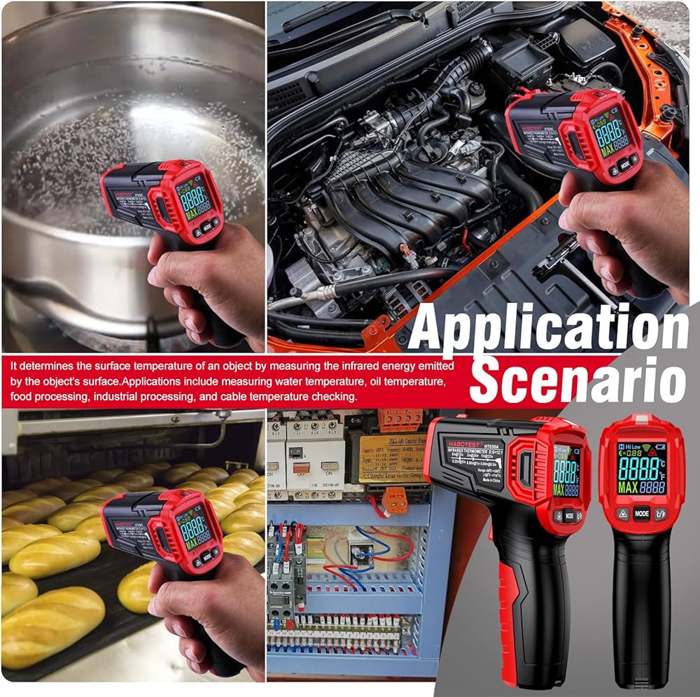 【ليس للاستخدام البشري】مقياس حرارة الأشعة تحت الحمراء لقياس درجة حرارة السطح، مثل الطبخ، الخبز، الشواء، الطعام المجمد، الطعام المقلي، إصلاح المركبات، صيانة المنزل، مساعد DIY، الزراعة، صناعة النبيذ، حمام السباحة، مراقبة الحرائق، الصناعة، الأجهزة المنزلية، لعبة القطط، المحول، إلخ. قراءات درجة الحرارة من هذا المسدس المؤقت هي أشياء غير حية، وستكون درجة الحرارة المقاسة للبشر أو الحيوانات غير دقيقة.