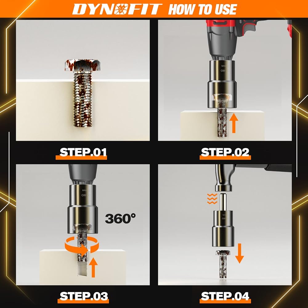 🔧خامة ممتازة: أداة إزالة الصواميل دينوفيت مصنوعة من فولاذ الموليبدينوم الكروم المعالج بالحرارة (CR-MO، قوة ومتانة عالية)، يأتي كل مقبس مجموعة أدوات إزالة الصواميل الفورية مزيتًا مسبقًا مما يحسن بشكل كبير من مقاومة الصدأ والتآكل والجودة المتينة. عملية التعامل مع السطح من شأنها أن تمنع خدش الطبقة الخارجية.
