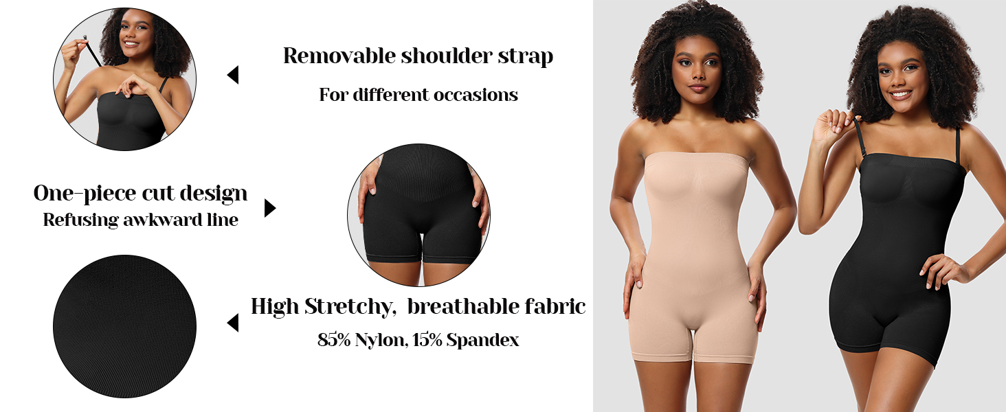• ملابس متعددة الاستخدامات في أي مناسبة: تتميز ملابس الجسم بدون حمالات لدينا بتعدد الاستخدامات، حيث إنها سلسة وخفيفة الوزن وقابلة للتمدد وطول مثالي، مما يجعلها غير قابلة للاكتشاف فعليًا تحت الملابس اليومية. سواء كنت ستذهب إلى نادي، أو حفلة، أو زفاف، أو موعد، أو عمل، أو احتفال بعيد الميلاد، أو عطلة، فإن هذا السالوبيت يتيح لك الشعور بالثقة والراحة في أي مكان.