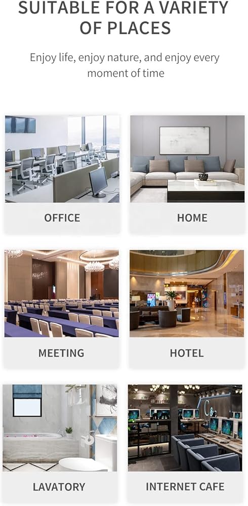 - التطبيق: الفندق، التسوق، المركز التجاري، المطار، السينما، المكتب، الاجتماع، الغرفة، متجر البيع بالتجزئة
