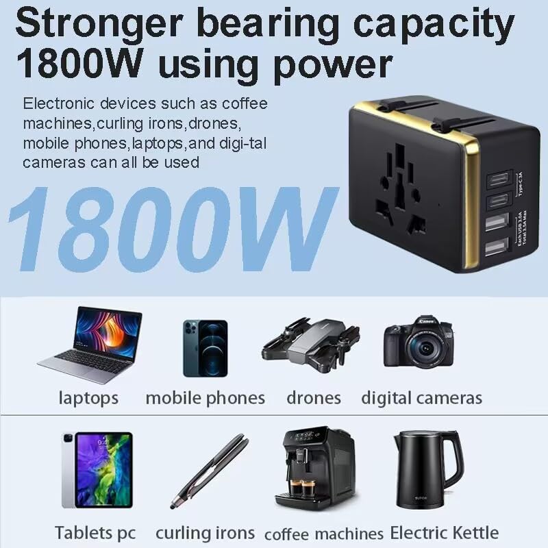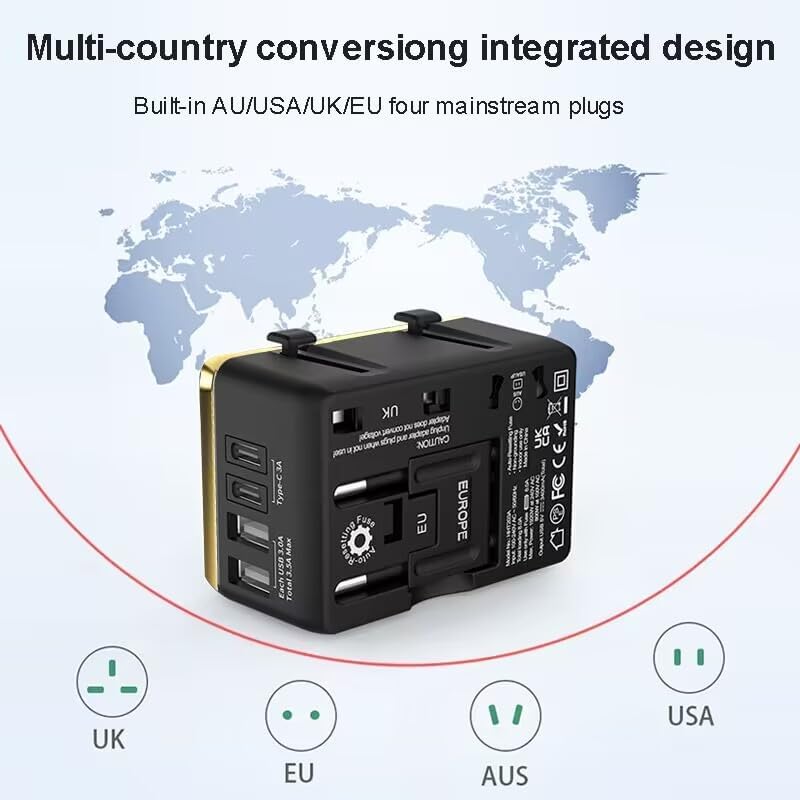 محول عالمي - يشتمل المحول الشامل لدينا على 4 مقابس مختلفة تغطي أكثر من 150 دولة، مثل الولايات المتحدة الأمريكية وكندا واليابان والمملكة المتحدة وأيرلندا واسكتلندا وفرنسا وألمانيا وإيطاليا وإسبانيا والصين وأستراليا والأرجنتين ونيوزيلندا وما إلى ذلك (باستثناء جنوب أفريقيا والهند).