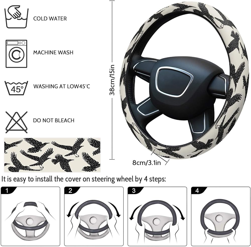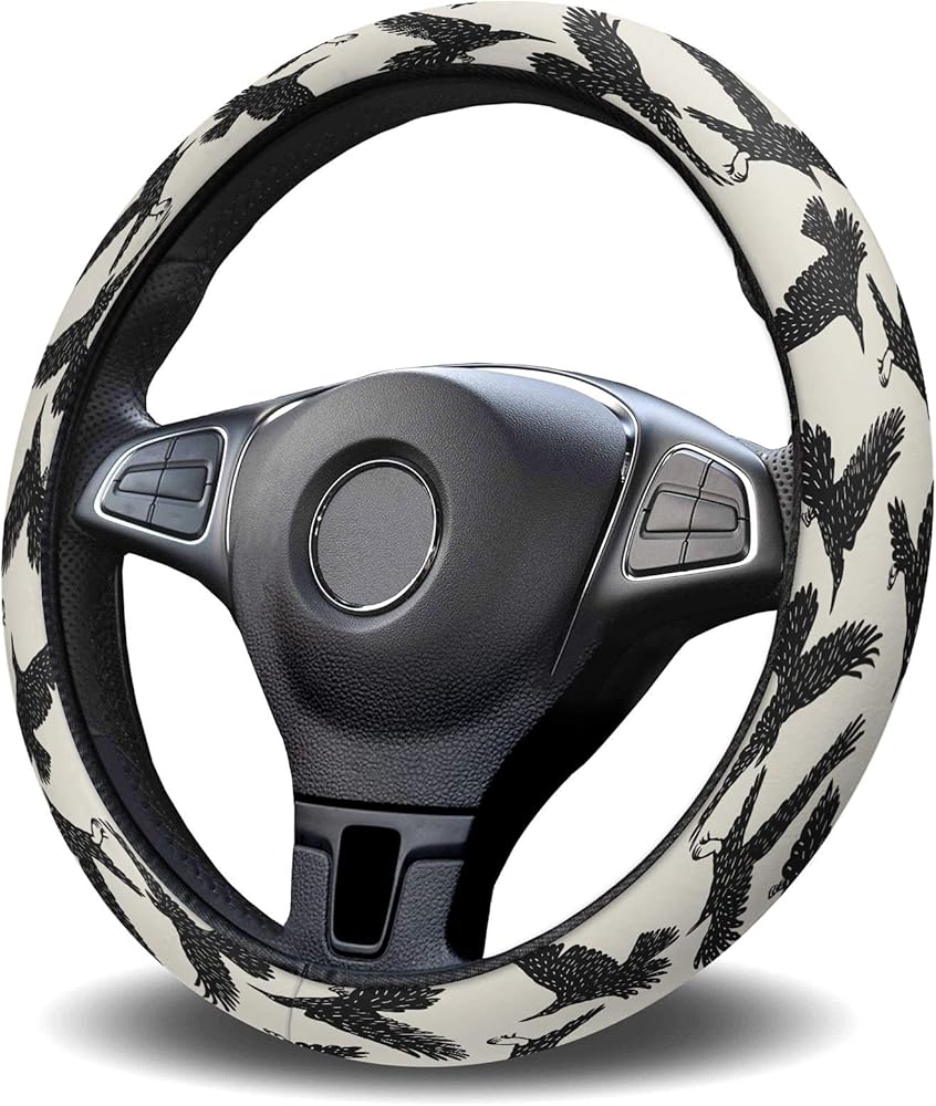 أغطية عجلة القيادة لوحة طيور الغراب، غطاء حماية لعجلة القيادة من الإسفنج المرن المقاوم للانزلاق، ملحقات السيارة للمركبات وسيارات السيدان وسيارات الدفع الرباعي والشاحنات والشاحنات