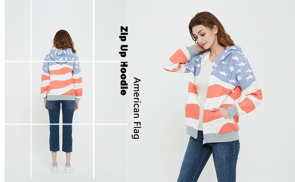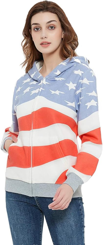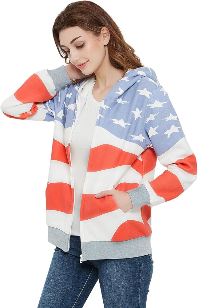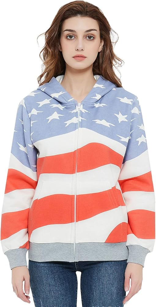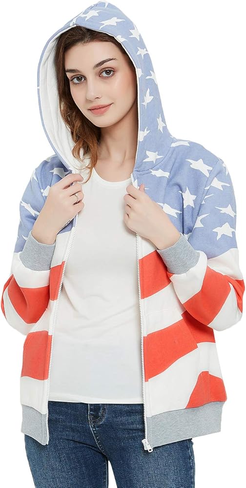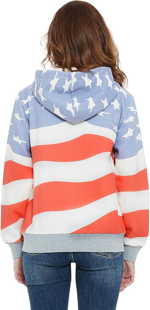 Anna-Kaci Womens Fashion American National USA Flag Zipper Up Rib Hoodie Jacket