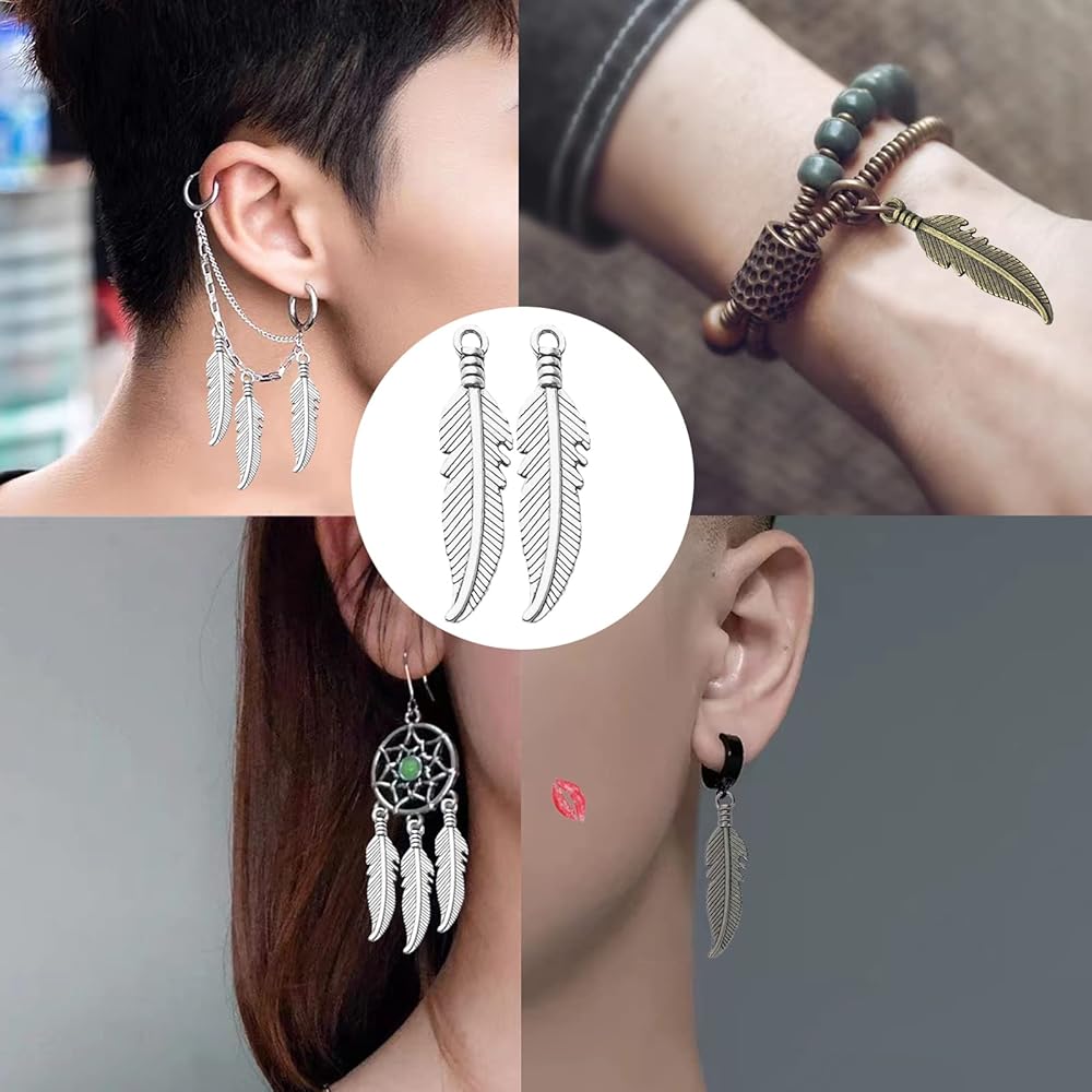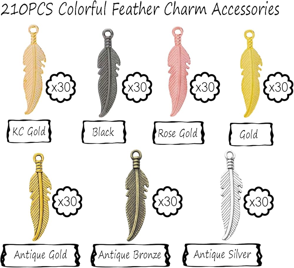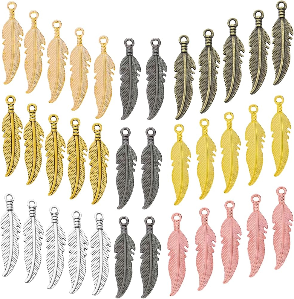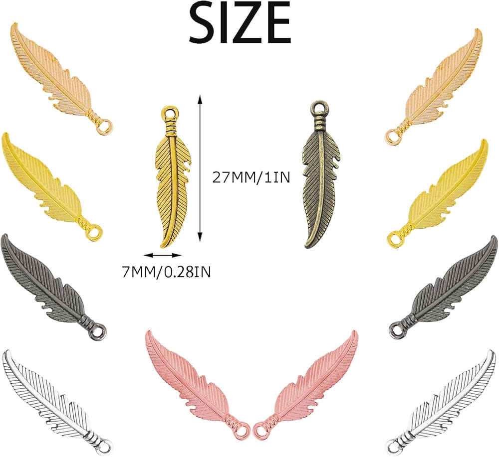 تستخدم على نطاق واسع: هذه القلادات المصنوعة من الريش المصنوعة من خليط معدني مثالية لإضافتها إلى القلائد والأساور والأقراط وسلاسل المفاتيح وسلاسل الحقائب والإشارات المرجعية وديكورات صائدة الأحلام والمزيد. خيار رائع لتصميمات المجوهرات المصنوعة يدويًا.