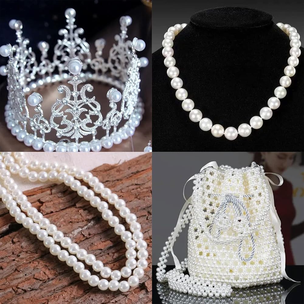 Artificial pearls, round and perforated, can be strung with string to make exquisite necklaces, bracelets, purses, or bags.