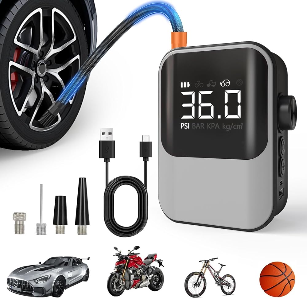 تصميم مريح - يتميز ضاغط الهواء المحمول الخاص بنا بنفخ الإطارات بجسم مصغر بتصميم خفيف الوزن، سواء للاستخدام المنزلي أو السفر، يمكنك حمله معك دون متاعب، وفي الوقت نفسه، يمكنه تلبية احتياجاتك القابلة للنفخ، مثل السيارة. الإطارات، إطارات الدراجات، إطارات الدراجات النارية، المراتب القابلة للنفخ، إطارات السباحة، كرات السلة، البالونات، الأرائك القابلة للنفخ وقوارب الكاياك، إلخ.