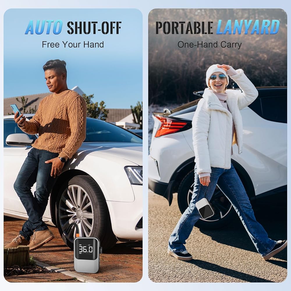 نفخ فعال - يعتمد ضاغط الهواء المحمول الخاص بنا على محرك فعال وتكنولوجيا متقدمة، ويستغرق دقيقة واحدة فقط لرفع ضغط إطارات سيارتك من 28 رطل لكل بوصة مربعة إلى 35 رطل لكل بوصة مربعة، ويعيد سيارتك بسرعة إلى التشغيل الطبيعي ويوفر وقتك الثمين. يضمن التصميم اللاسلكي كفاءة النفخ مع زيادة سهولة الاستخدام!