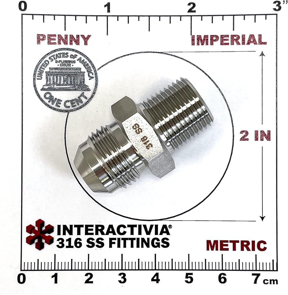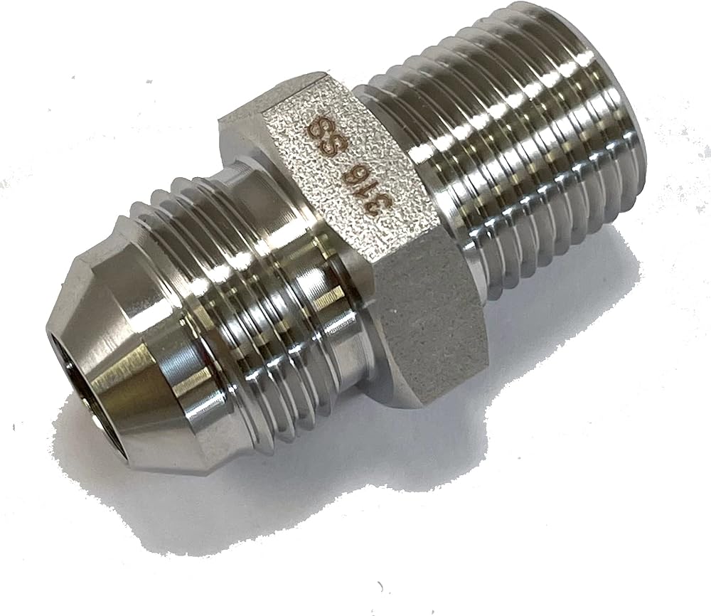 محول 316 من الفولاذ المقاوم للصدأ 3/8 بوصة NPT ذكر إلى AN-8 - ذكر 8AN - خيط سداسي مستدق للهواء أو الغاز أو السائل أو الماء أو الزيت أو التركيب الهيدروليكي - خرطوم أداة الهواء الصناعي أو توصيل الأنابيب 316SS