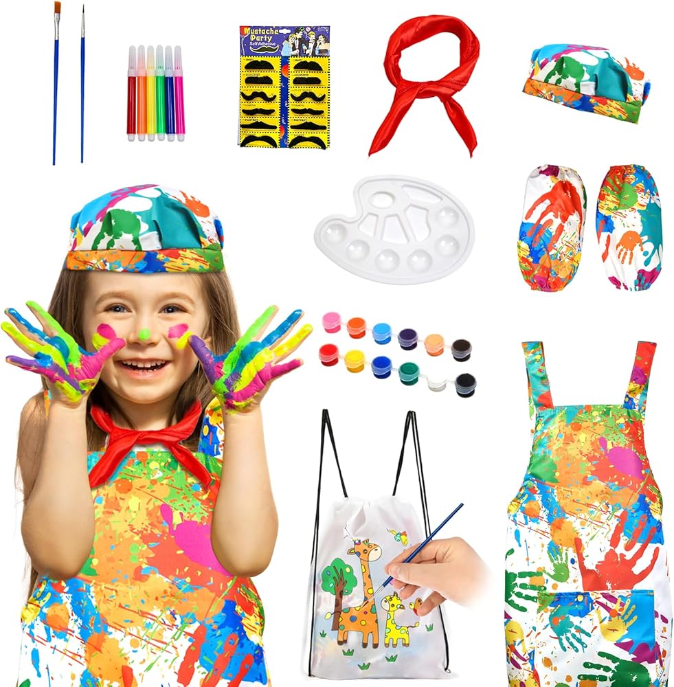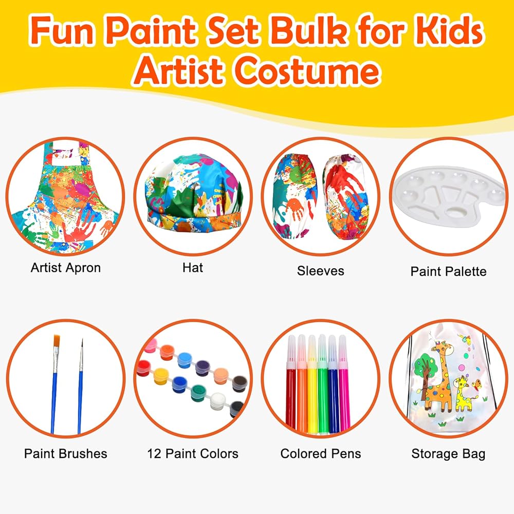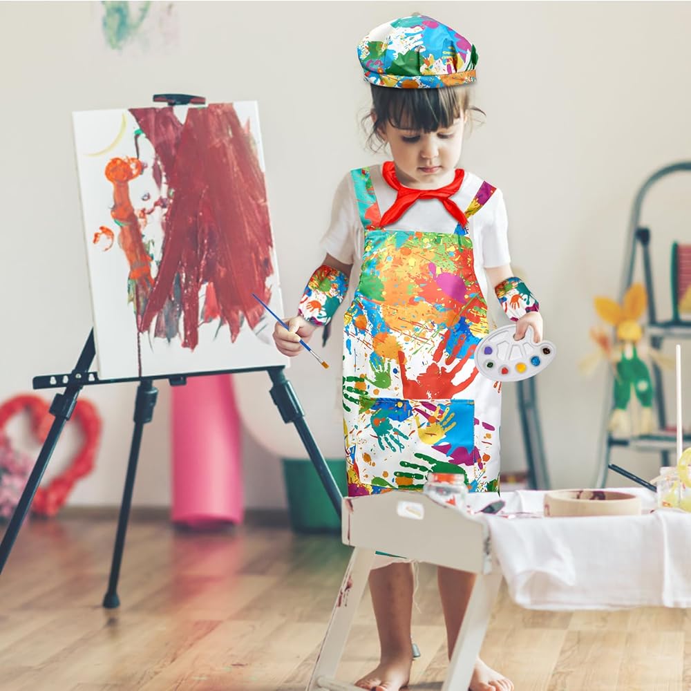 زي الفنان المثالي للأطفال: قم بتحويل طفلك الصغير إلى عبقري فني مع مجموعة أزياء الرسام الخاصة بنا! سوف تحصل على مريلة فنان لطيفة، وقبعة مطابقة وزوج من الأكمام، ووشاح ذو رقبة حمراء، و12 شاربًا، ولوحة طلاء، وفرشتي طلاء، و12 لون طلاء، و5 أقلام ملونة، وحقيبة تخزين.