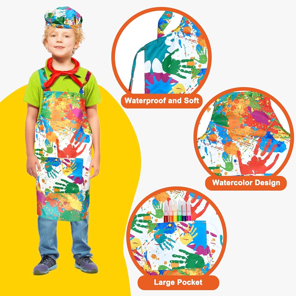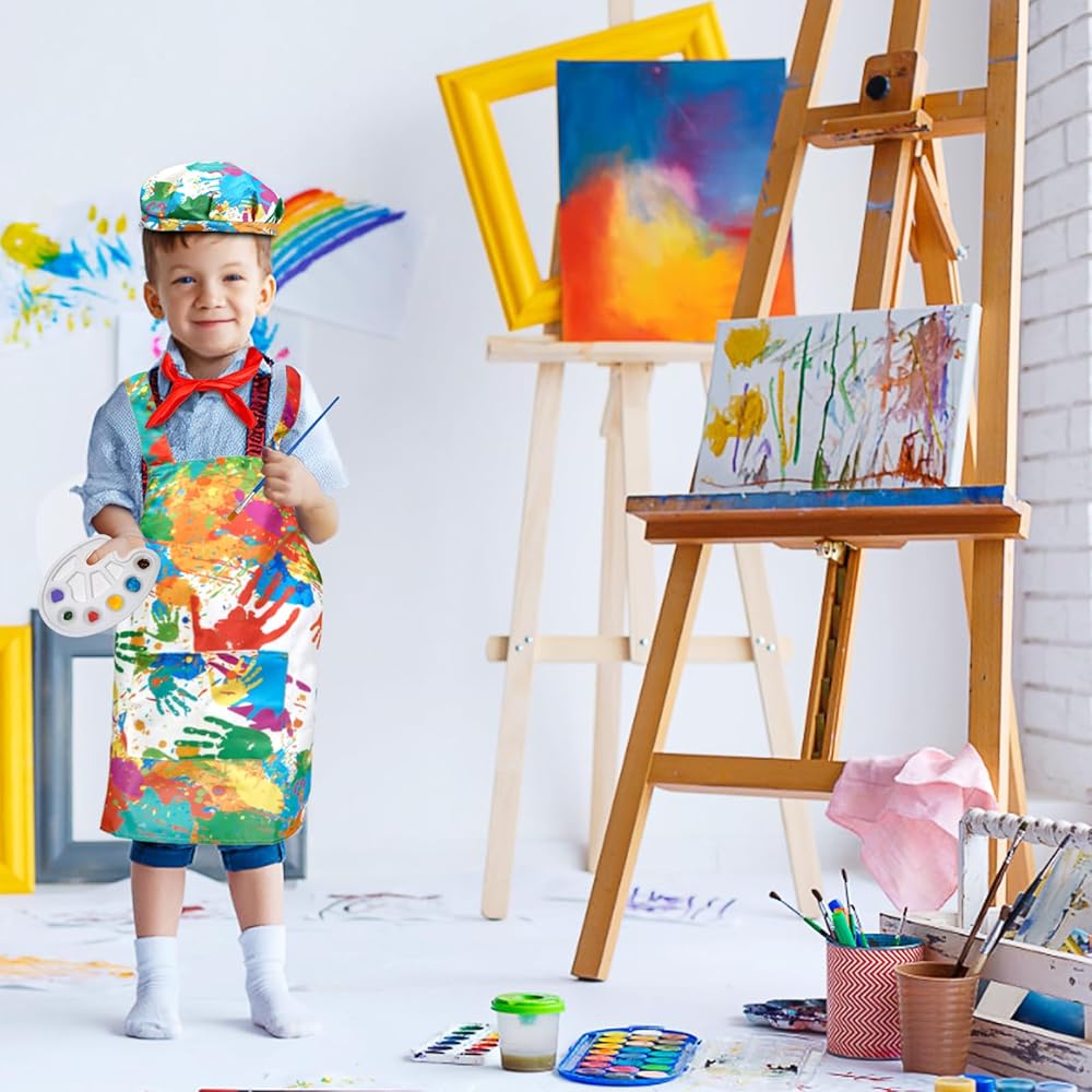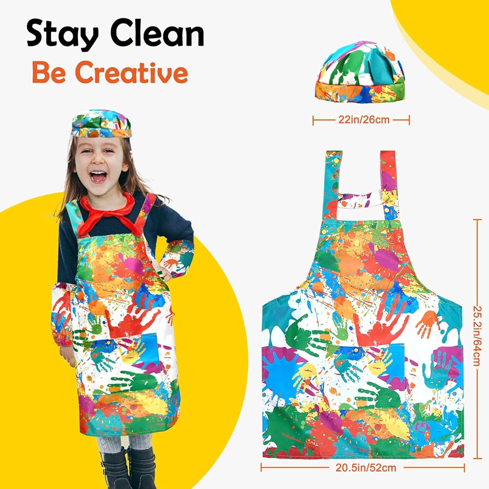 مادة مقاومة للماء ومريحة في الارتداء: زي الرسم للأطفال مصنوع من البوليستر المقاوم للماء، قوي وناعم، ويأتي مع قبعة قابلة للتمدد وزوج من الأكمام، سهل الارتداء والخلع. حافظ على مساعدك الصغير مريحًا وأنيقًا.