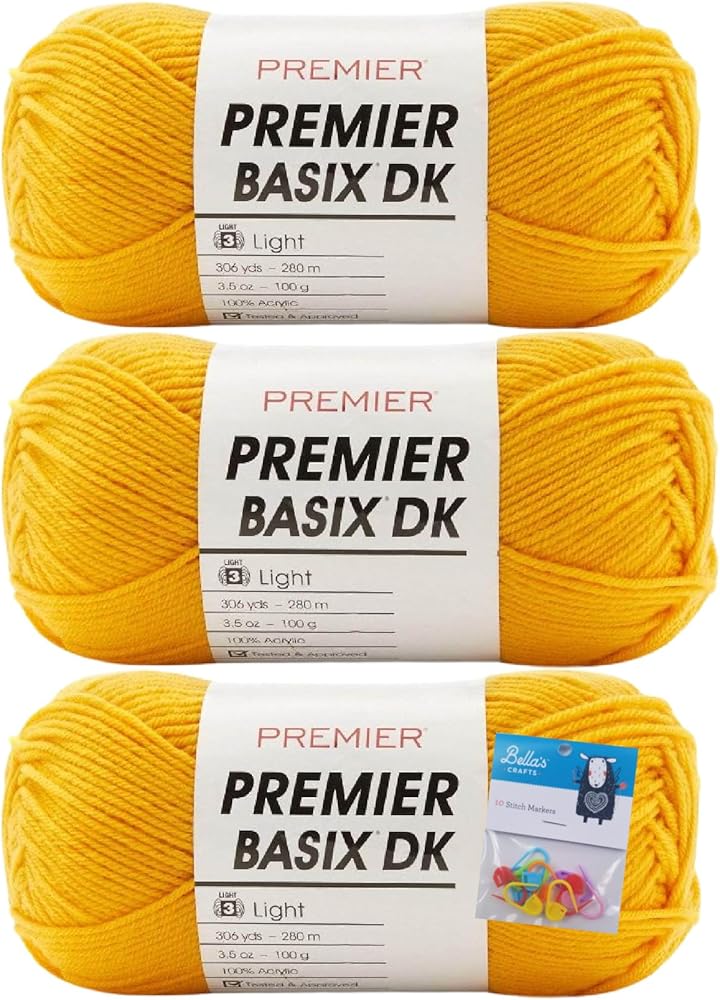 • Premier Yarns Basix DK 3-Pack Bundle With Bella's Crafts Stitch Markers.