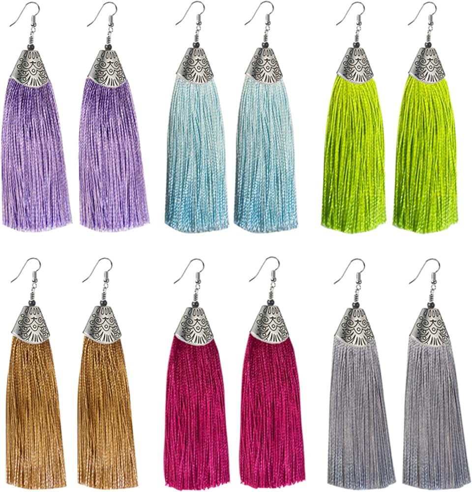 • 【VARIOUS COLORS】: 6 pack colorful fringe earrings for women have different styles and colors for women girls, such as red, black, yellow, green, pink, colorful and so on, which can match your different colors skirt, dresses, shirts, coats to present different styles.