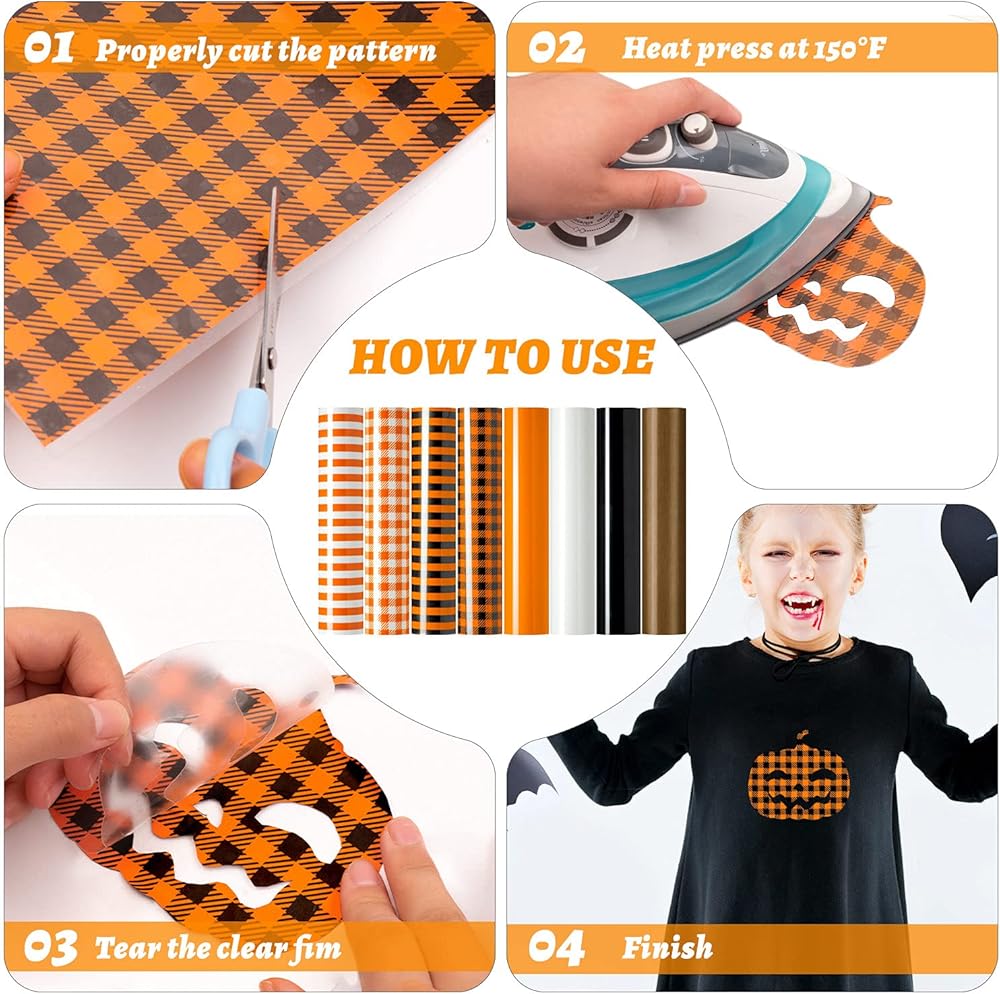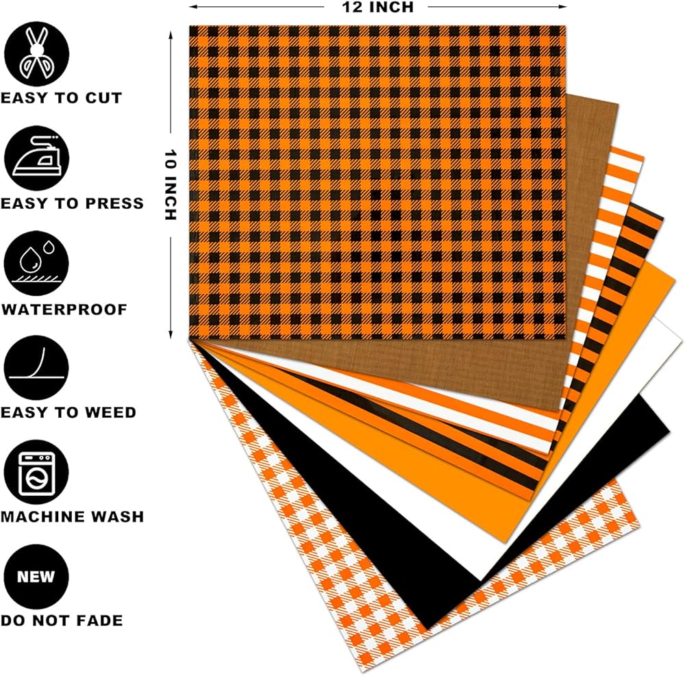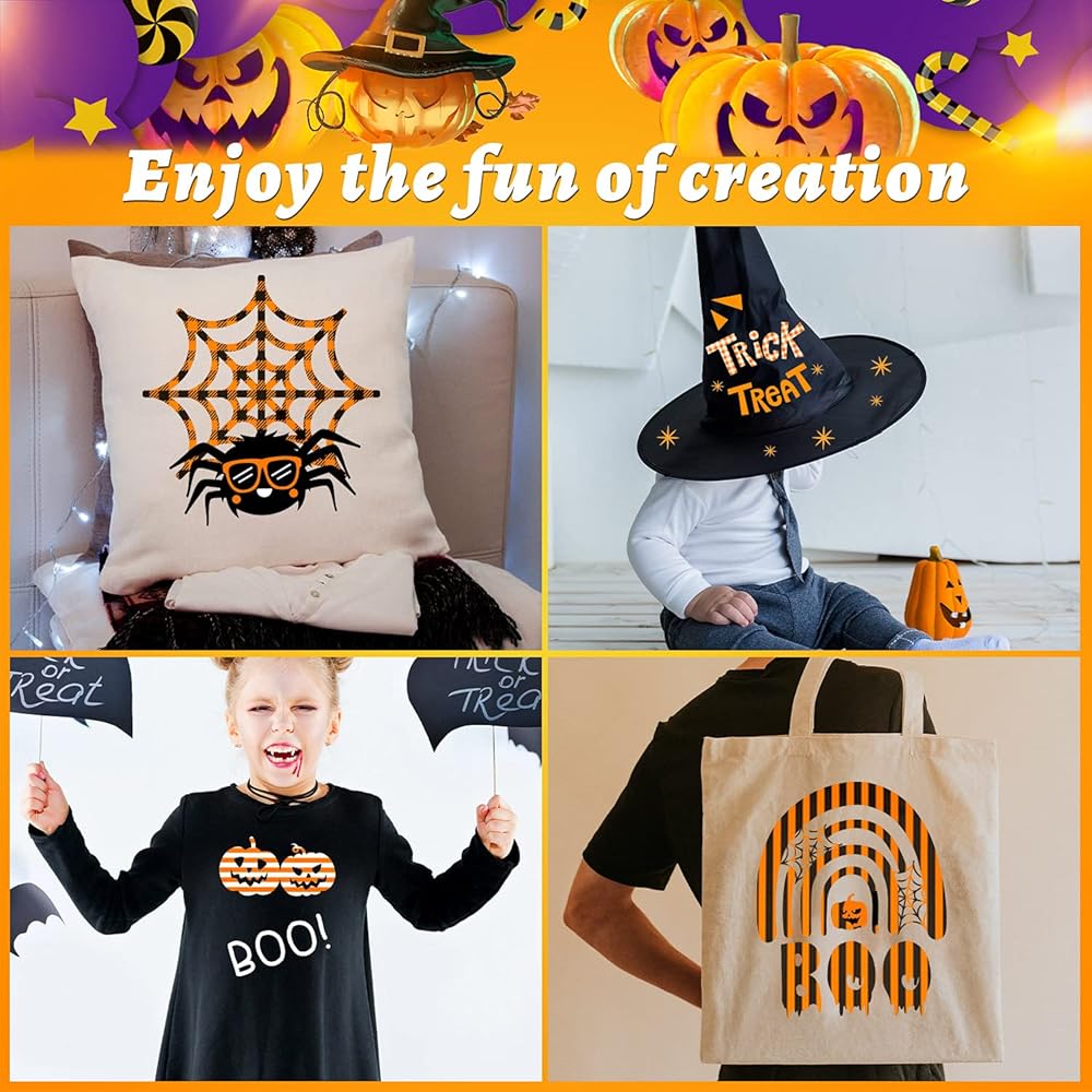 【عبوة قيمة】تتضمن هذه المجموعة 7 أوراق HTV بألوان مختلفة و1 ورقة تيفلون إضافية. لا يمكن لهذه المكواة الموجودة على صفائح الفينيل أن تلبي متطلبات عيد الهالوين أو أي عطلة أخرى فحسب، بل تلبي أيضًا احتياجات الخريف المعتادة.