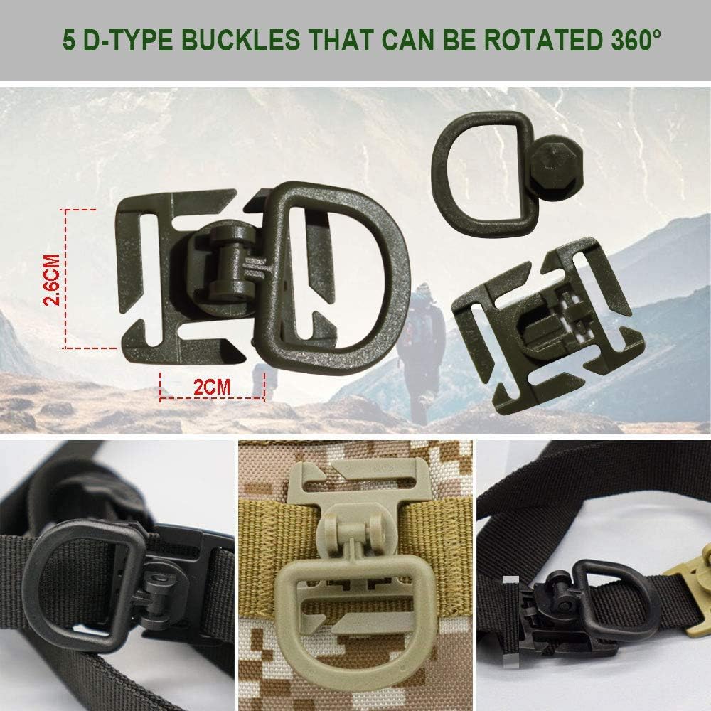 5 x Tactical 360 Rotation D-Ring Clips