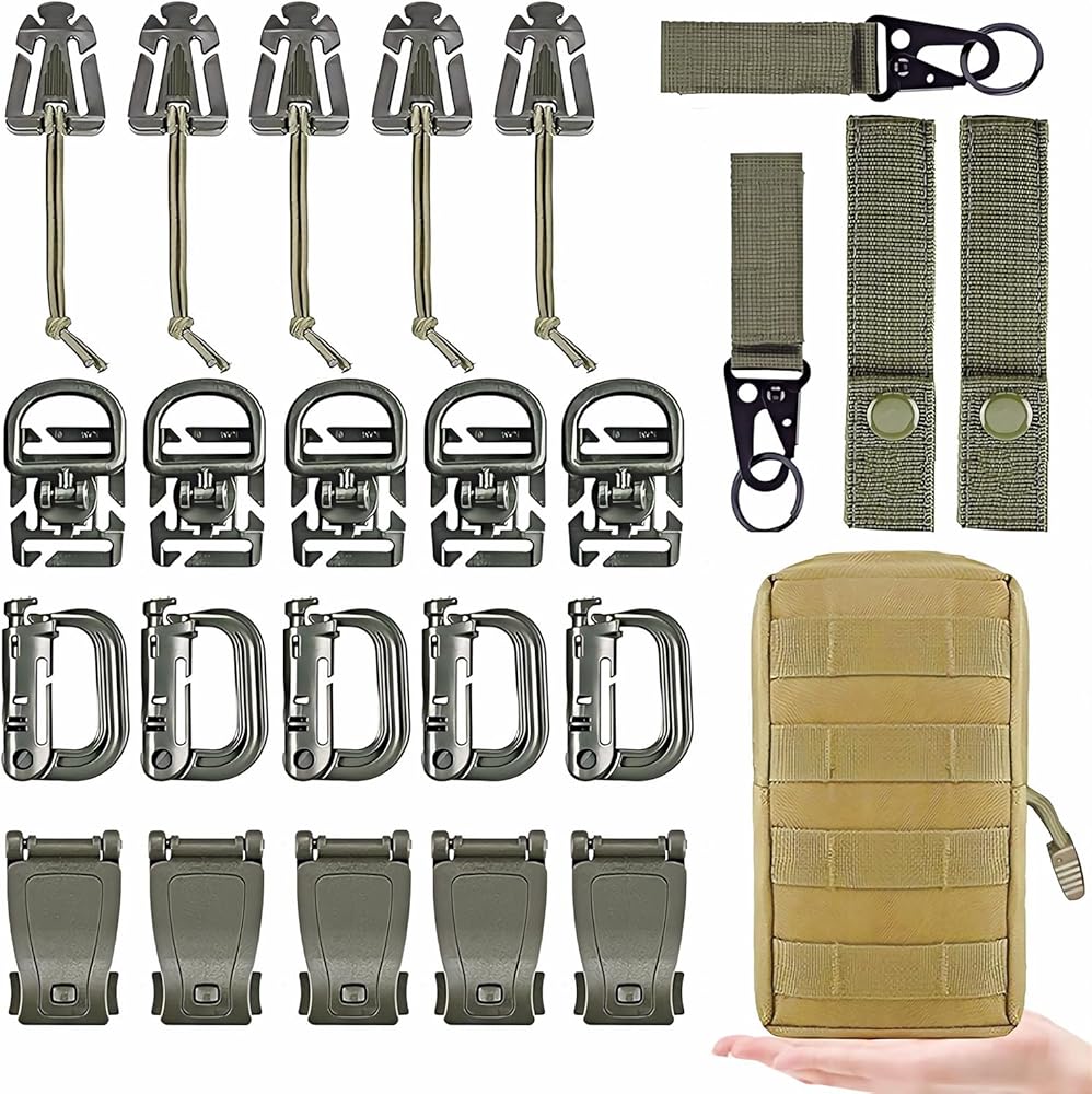 We have D-ring Grimloc locking,web Elastic Strings and Buckles,tactical key Ring Holder,MOD Straps and 360 Rotation D-Ring Clips