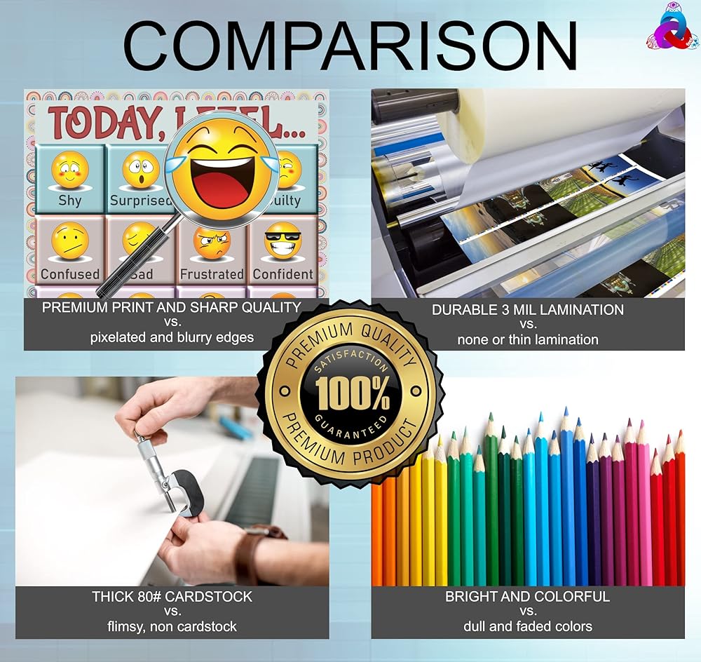 • ⭐IDEAL SIZE- 14x19.5 inches, 80# Cover stock glossy art paper, front and back lamination makes a perfect fit for classrooms, virtual learning, bulletin board, homeschool room, learning centers, or kids' bedrooms.