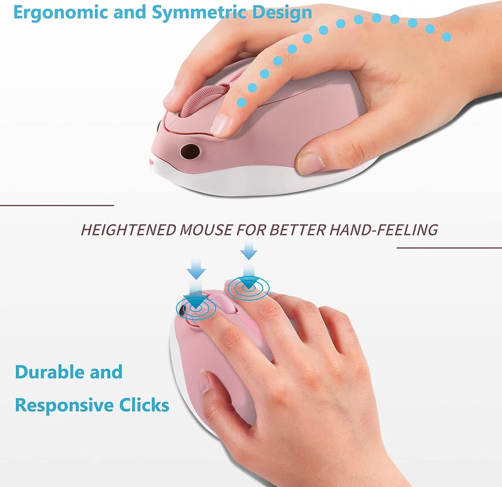 ❤[تصميم مريح] يستخدم بشكل مريح لفترات طويلة من الوقت دون أي تشنجات أو أوجاع؛ مادة لامعة، مضادة للعرق، مقاومة للأوساخ؛ تصميم العجلة الذكية يجعل التصفح أسهل. يزن ماوس الهامستر اللطيف الذي يعمل بتقنية البلوتوث 60 جرامًا فقط وهو صغير الحجم، مما يوفر لك المساحة. يمكن وضعها بسهولة في حقيبتك في رحلات العمل. مجموعة الماوس اللاسلكية اللطيفة هذه هي هدية مثالية لعيد الميلاد للنساء والرجال والجد والجدة والأم والأب والزوجين والصديق والصديقة والفتاة والزوجة والزوج والأخت والأخ.