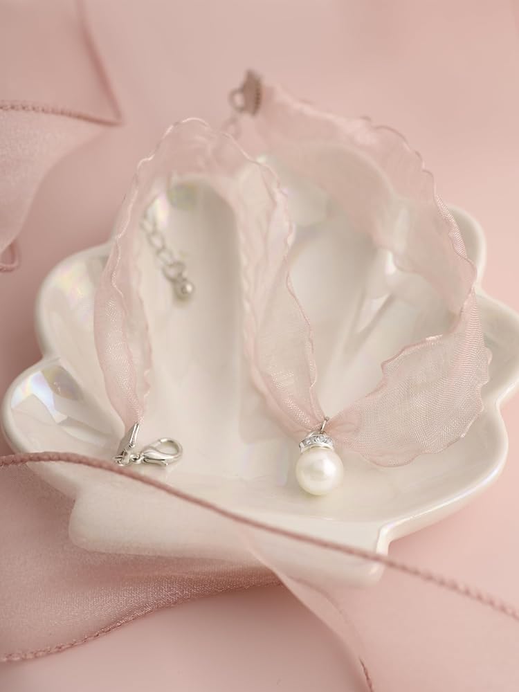 اللؤلؤة قطرة قلادة الوردي الشيفون kawaii كوكيت قلادة قلادة مجوهرات للنساء، هدايا رومانسية للنساء الاشياء العصرية للفتيات في سن المراهقة في العشرينات من عمرها