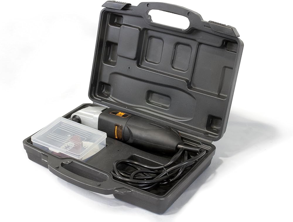 هل تتذكر متى اضطررت إلى الرؤية في تلك الزاوية التي يصعب الوصول إليها؟ قم بالقص والرمل والكشط في الأماكن التي يصعب الوصول إليها باستخدام مجموعة الأدوات المتعددة المتذبذبة بسرعة متغيرة دابليو اي ان مع عدد كبير من الملحقات والتصميم المدمج وخفيف الوزن، توفر هذه الأداة مجموعة متنوعة من الوظائف لأي شيء قد تتطلبه وظيفتك. اضبط قرص السرعة المتغيرة في أي مكان من 10000 إلى 20000 تذبذب في الدقيقة حسب احتياجات المهمة التي تقوم بها. يعمل المحرك القوي بقوة 3.5 امبير على تسهيل عملية النشر والصنفرة وإزالة الأزيز والقطع وغير ذلك الكثير. تتضمن هذه المجموعة حقيبة تخزين الأدوات وشفرة مكشطة ووسادة صنفرة مثلثة وأوراق صنفرة وشفرة منشار. بالإضافة إلى ذلك، إذا كان هناك ملحق إضافي تريد شراؤه، فإن أداة دابليو اي ان Multi Tool متوافقة مع معظم شفرات الأدوات والملحقات متعددة الوظائف المتوفرة في السوق. تسمح الرافعة سريعة الفك بتغيير الشفرة بسرعة وبساطة بدون أدوات. لا تدع الزوايا الضيقة والحواف التي يصعب قصها تقف في طريقك بعد الآن. قم بقوالب القاعدة وكشط الطلاء والسجاد. يمكنك قص الكابلات وأنبوب التصريف وأنابيب الهواء والجدران الجافة والأنابيب بسهولة. قم برمل الأسمنت والخرسانة والجص والحجر ولاصق البلاط والطلاء والخشب كل ذلك باستخدام أداة دابليو اي ان متغيرة السرعة المتذبذبة المتعددة. ولأنه منتج دابليو اي ان فإن أداتك متعددة الوظائف تأتي مدعومة بضمان لمدة عامين، ومخزون مخزون من قطع الغيار وخط هاتف عملاء ودود، كل ذلك للتأكد من أنك تتذكر دابليو اي ان.